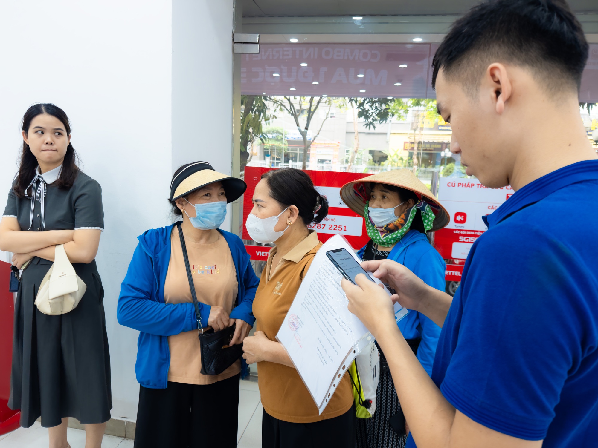 Đáng chú ý, theo ghi nhận, có khá đông người cao tuổi mang theo CCCD gắn chip hoặc giấy tờ tùy thân hợp lệ cùng chiếc SIM đang sử dụng đến trực tiếp cửa hàng để được hỗ trợ. Nhiều người cho biết gặp khó khăn trong việc tự thao tác cập nhật thông tin qua các ứng dụng trực tuyến.