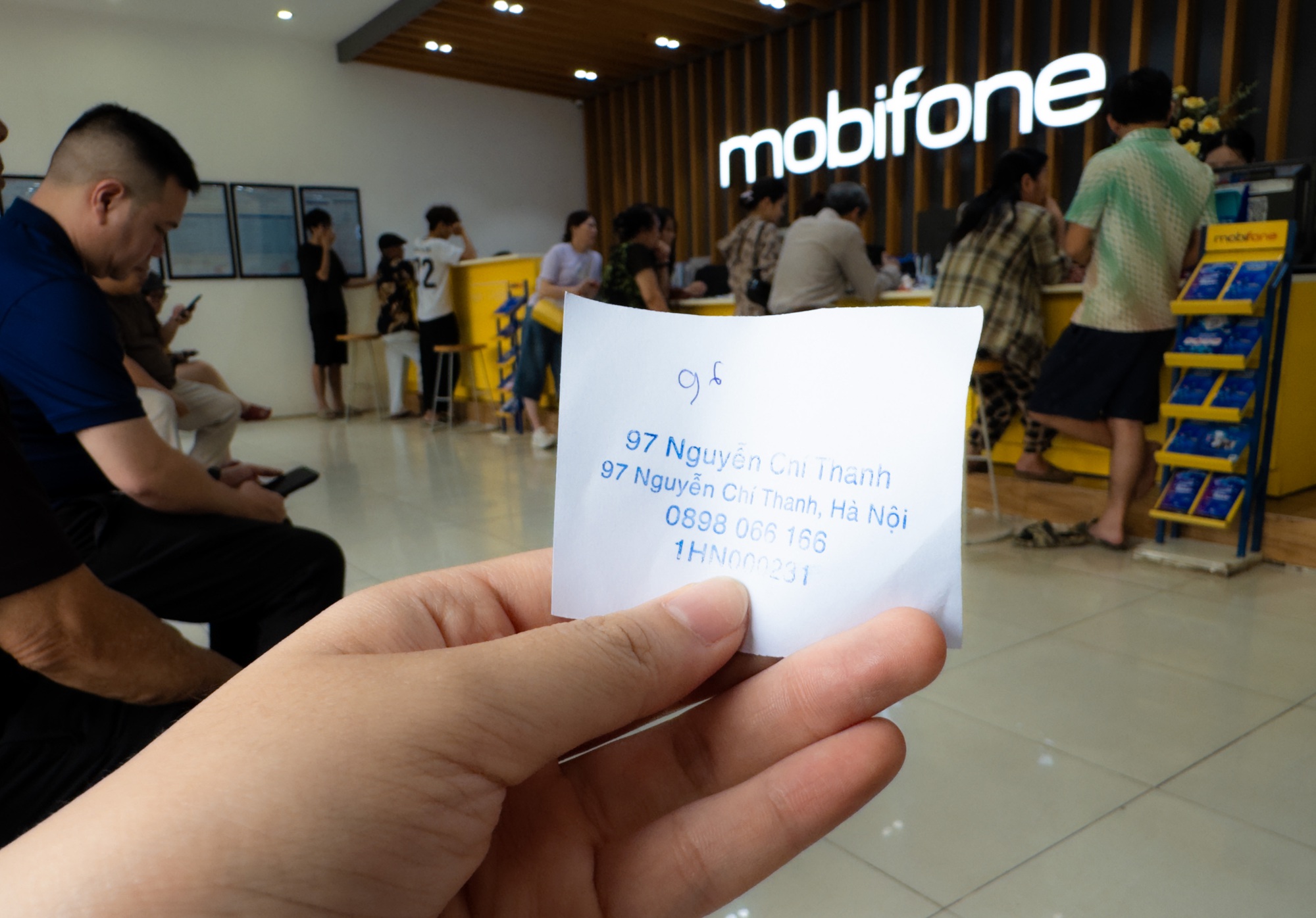 Tại một cửa hàng nhà mạng trên đường Nguyễn Chí Thanh, người dân xếp hàng lấy số và chờ đợi đến lượt