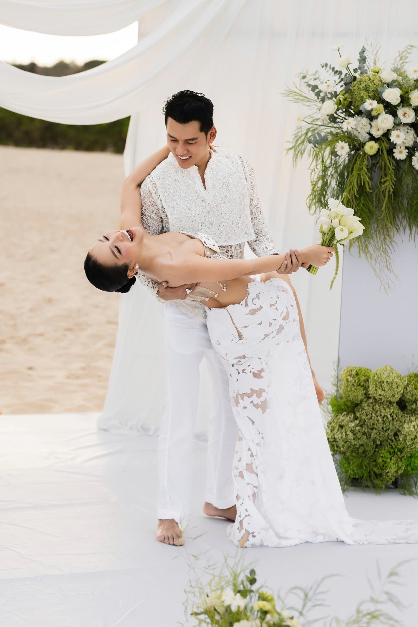 Cặp đôi diễn viên - ca sĩ Việt tổ chức lễ cưới ở biển, cô dâu diện hở đến mức chưa ai dám thử!