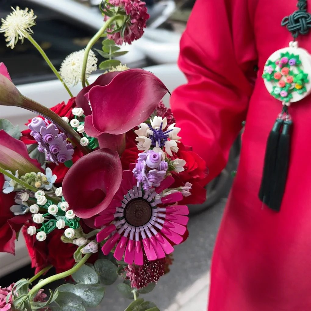 Đến bó hoa cưới cũng được cặp đôi tự tay chuẩn bị, không ngờ nó sống động đến mức không ai đoán được hoa làm từ... lego.