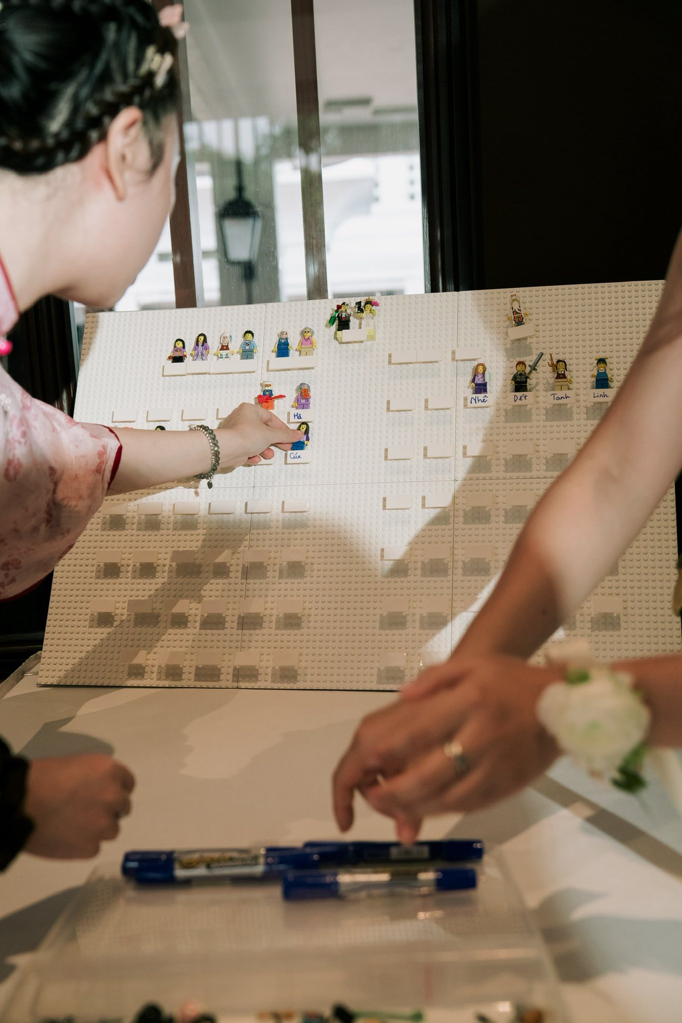 Khu vực dành cho khách ký tên hay dành những lời chúc đến cô dâu chú rể cũng được cặp đôi thay thế bằng bảng tên khách mời Lego.