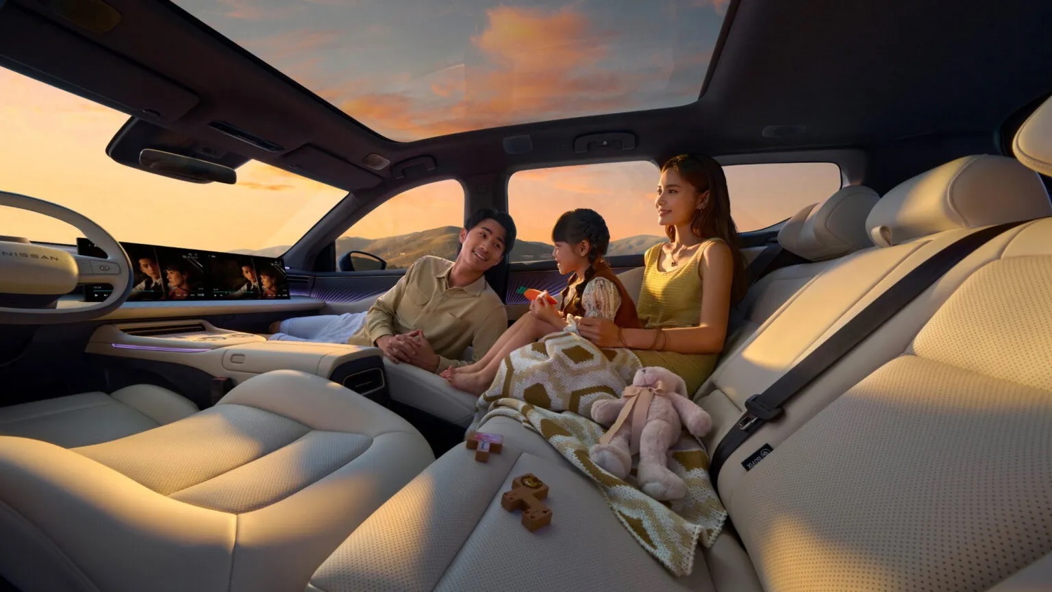 Tại Trung Quốc, khoang lái của Nissan NX8 có cặp màn hình giải trí 15,6 inch đặt trên bảng táp-lô, tách biệt hoàn toàn với bảng đồng hồ kỹ thuật số 10,25 inch. Hệ thống này vận hành trên nền tảng chip xử lý Qualcomm Snapdragon 8295P mạnh mẽ. Ở phiên bản cao cấp nhất, xe còn được trang bị màn hình hiển thị kính lái thực tế ảo tăng cường (AR-HUD) lên tới 63 inch và hệ thống âm thanh 25 loa cao cấp.