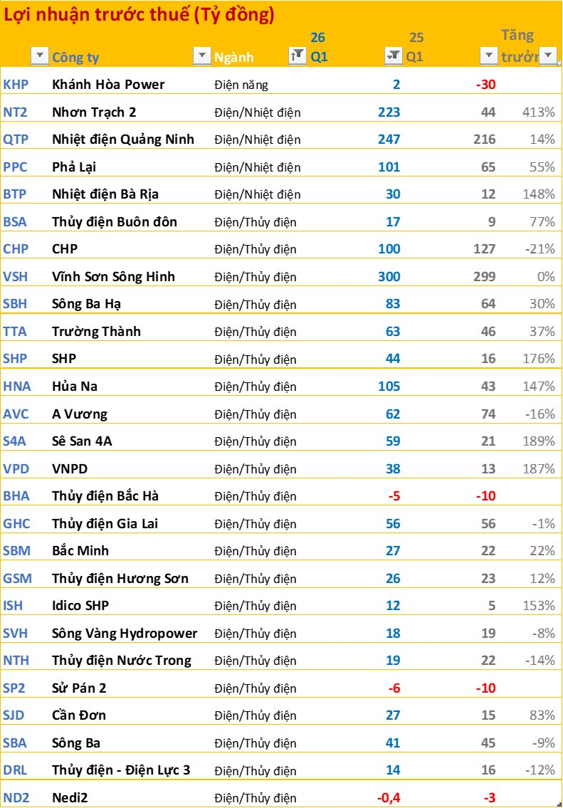 Đa số các doanh nghiệp nhiệt điện và thủy điện ghi nhận mức tăng trưởng dương. Tuy nhiên, một số ít đơn vị thủy điện nhỏ vẫn đang trong tình trạng thua lỗ hoặc tăng trưởng âm.