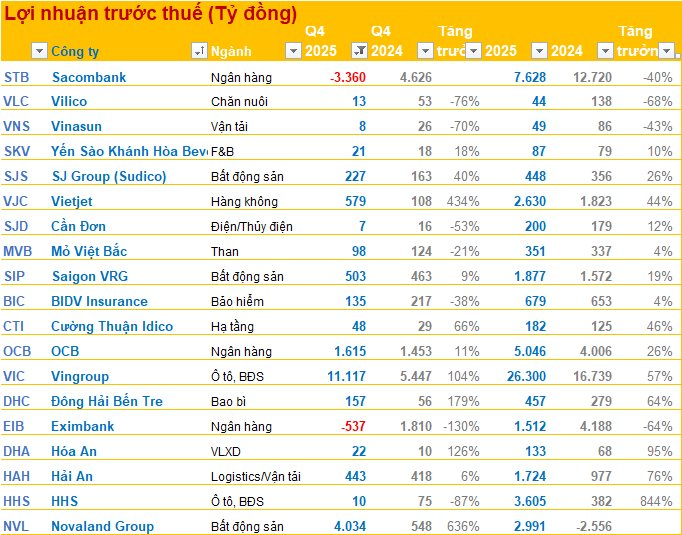 Bức tranh BCTC quý 4/2025 đã dần hoàn thiện.
