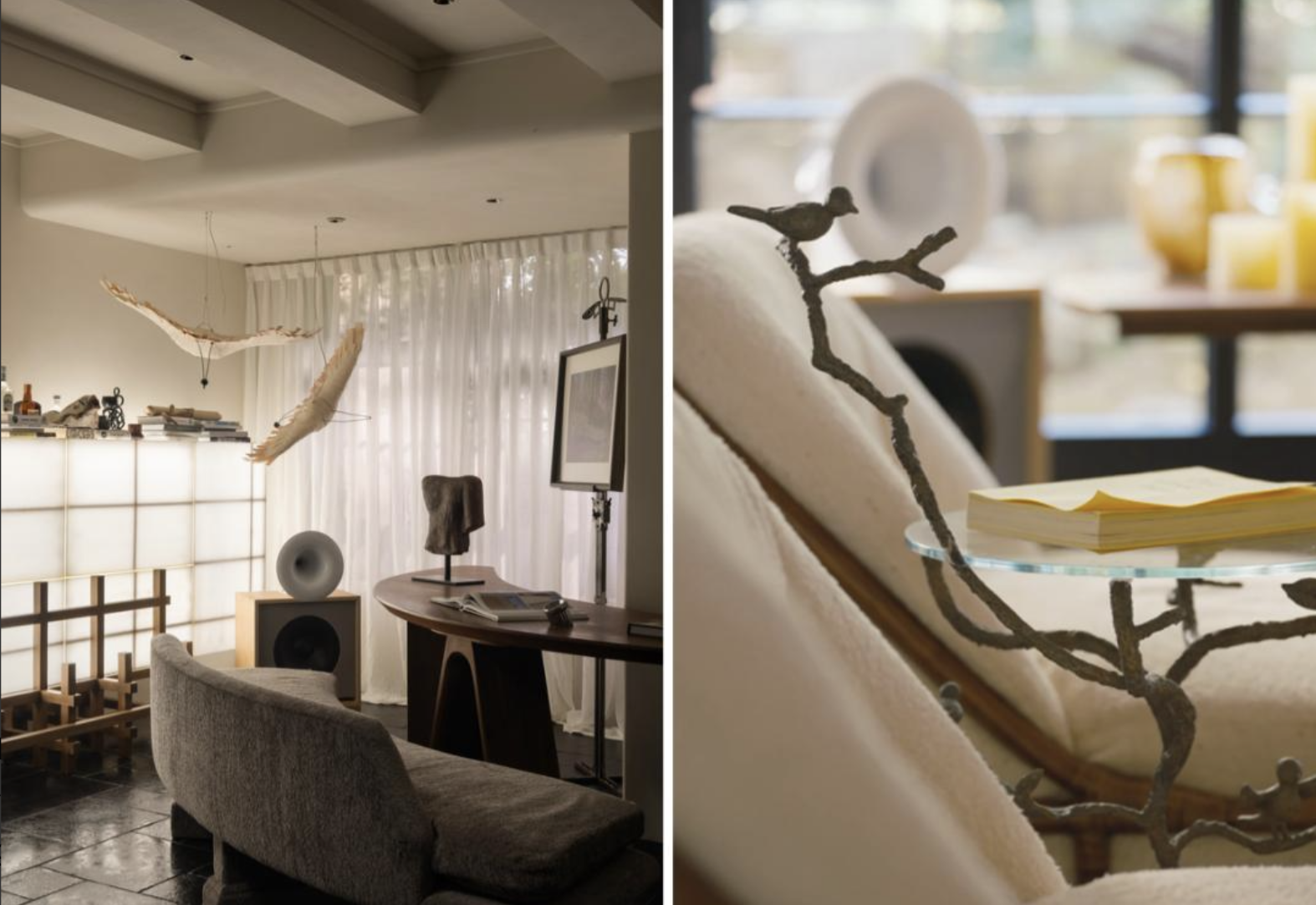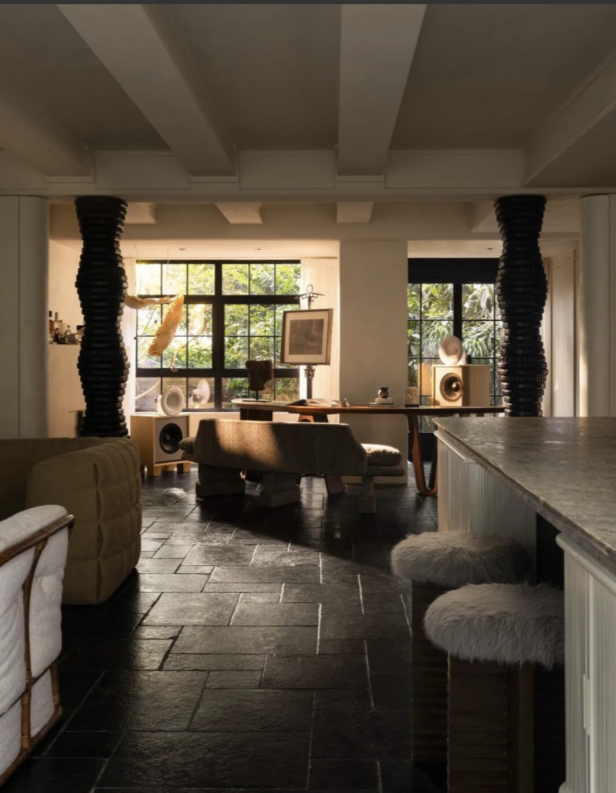 Hai vợ chồng Trương Anh vốn là nhà thiết kế. Lần này, cả hai được “làm khách hàng của chính mình”. Trương Anh phụ trách nội thất cứng, còn Ngọc Sơn đảm nhận nội thất mềm. Mọi món đồ đều là những thứ họ yêu thích và gắn với kỷ niệm nghề nghiệp.