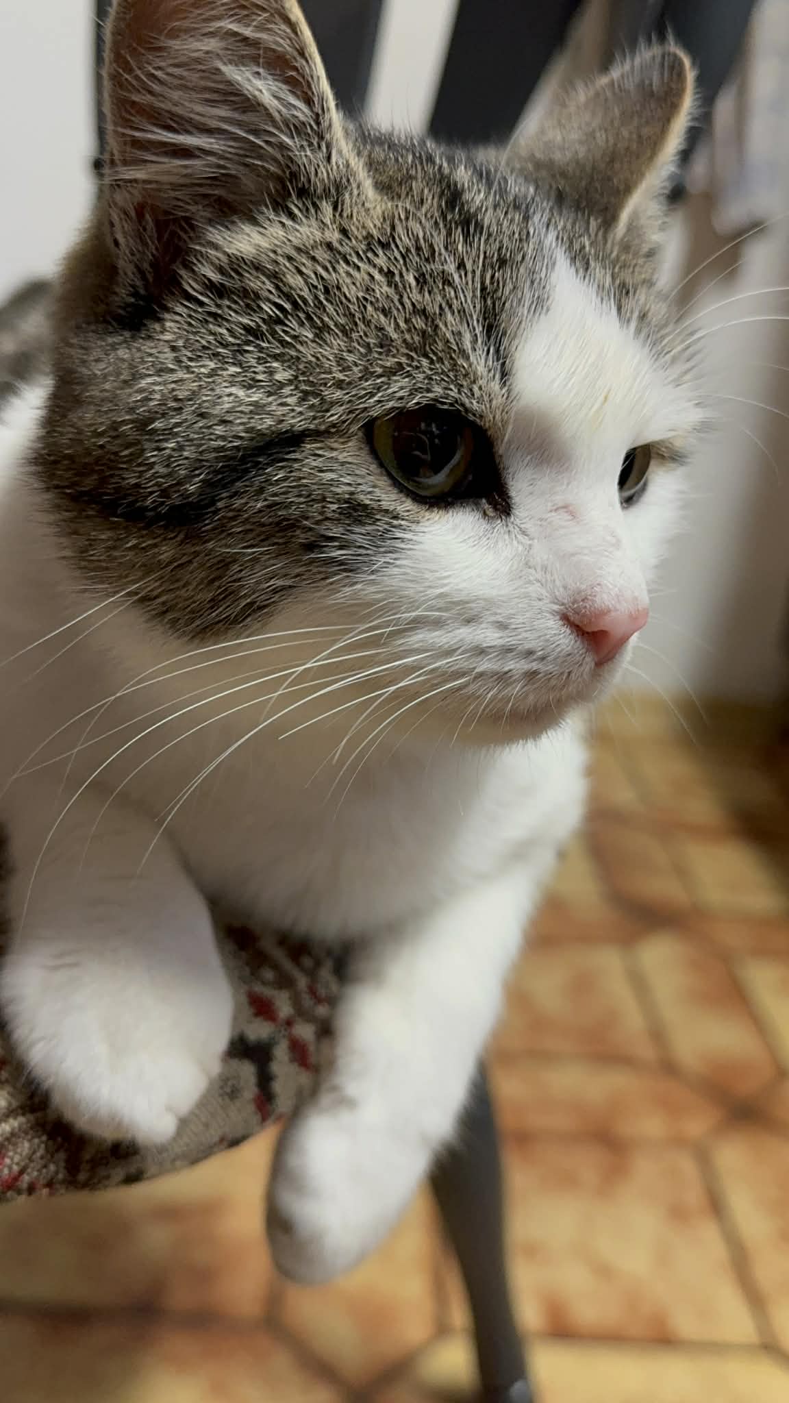 Đó là con mèo em từng cứu được khi còn rất nhỏ. Ngày ấy, con mèo gầy gò, yếu ớt, nằm co ro. Hôm nay, con mèo ấy đã "ú nu", lúc nào cũng híp mắt lim dim ngủ, trở thành một phần rất quen thuộc trong đời sống hằng ngày của Phúc.