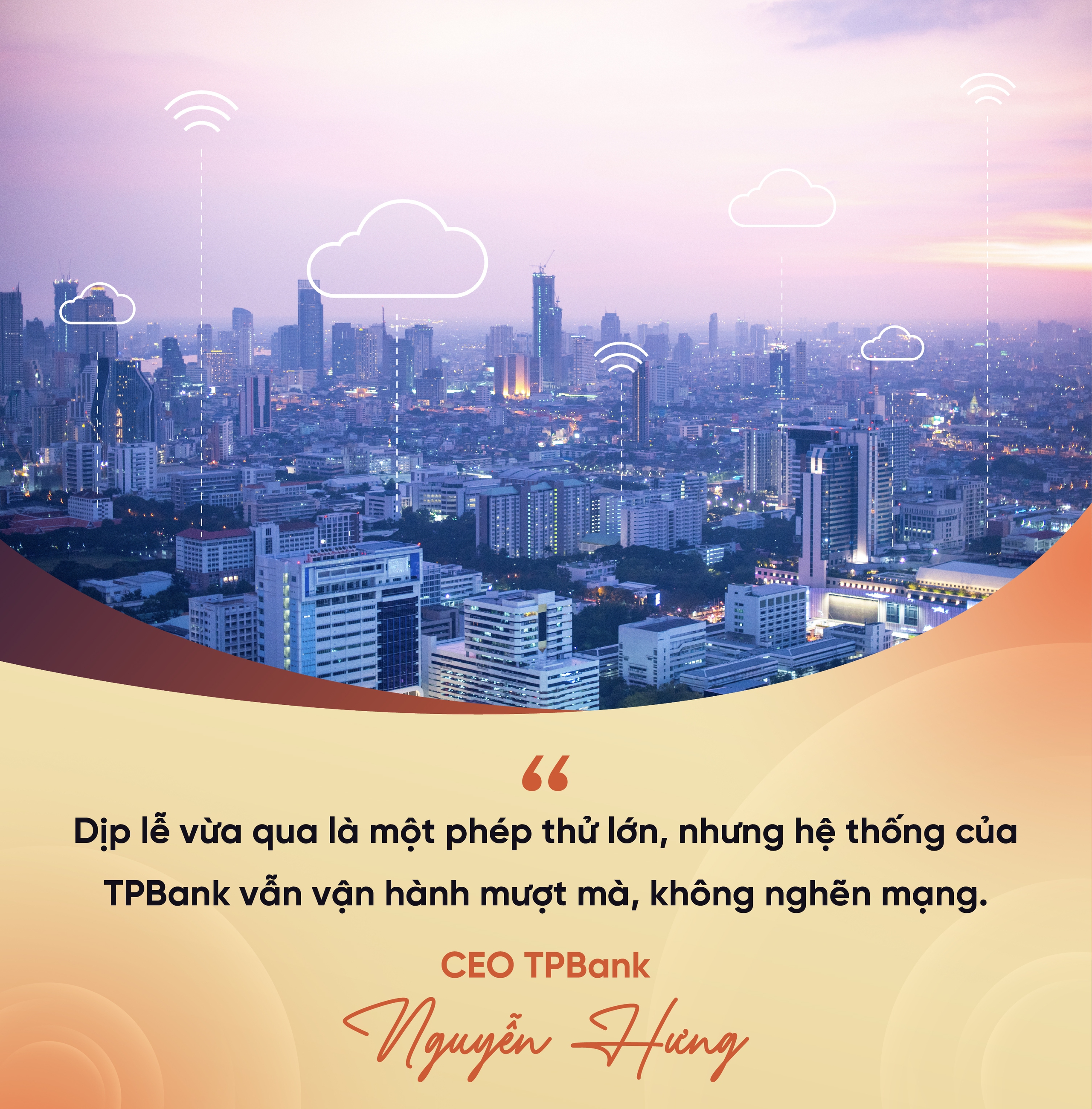 Cũng bởi khối lượng giao dịch ngày càng tăng, TPBank đã phải tính toán kỹ lưỡng về băng thông và hạ tầng công nghệ. Chỉ cần một sự cố nghẽn mạng cũng có thể khiến khách hàng mất niềm tin và rời bỏ dịch vụ. Dịp lễ vừa qua là một phép thử quan trọng: "Dù lượng truy cập tăng đột biến, hệ thống vẫn vận hành mượt mà, không bị ảnh hưởng. Đây thực sự là minh chứng cho sự chuẩn bị hạ tầng của ngành ngân hàng nói chung và TPBank nói riêng," ông Hưng khẳng định.