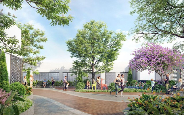 Hệ thống công viên xanh đa tầng là một trong những điểm độc đáo nhất của dự án. Zenith Garden tại tầng 1 với thiết kế cảnh quan nhiệt đới, Green Lounge tại tầng 3 kết hợp không gian thư giãn và vườn treo, cùng với khu vườn nghỉ dưỡng trên tầng thượng tạo nên một hệ sinh thái xanh hoàn chỉnh. Mỗi tầng công viên đều có chủ đề riêng biệt, từ không gian thiền định yên tĩnh đến khu vực hoạt động năng động, đáp ứng mọi nhu cầu thư giãn của cư dân.