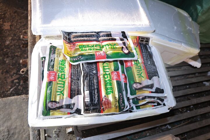 Qua kiểm tra, tổ công tác phát hiện 9.000 gói lạp xưởng (loại 10 chiếc/gói, trọng lượng 700gr/gói), trên bao bì thể hiện có xuất xứ Trung Quốc, tổng khối lượng khoảng 6,3 tấn.