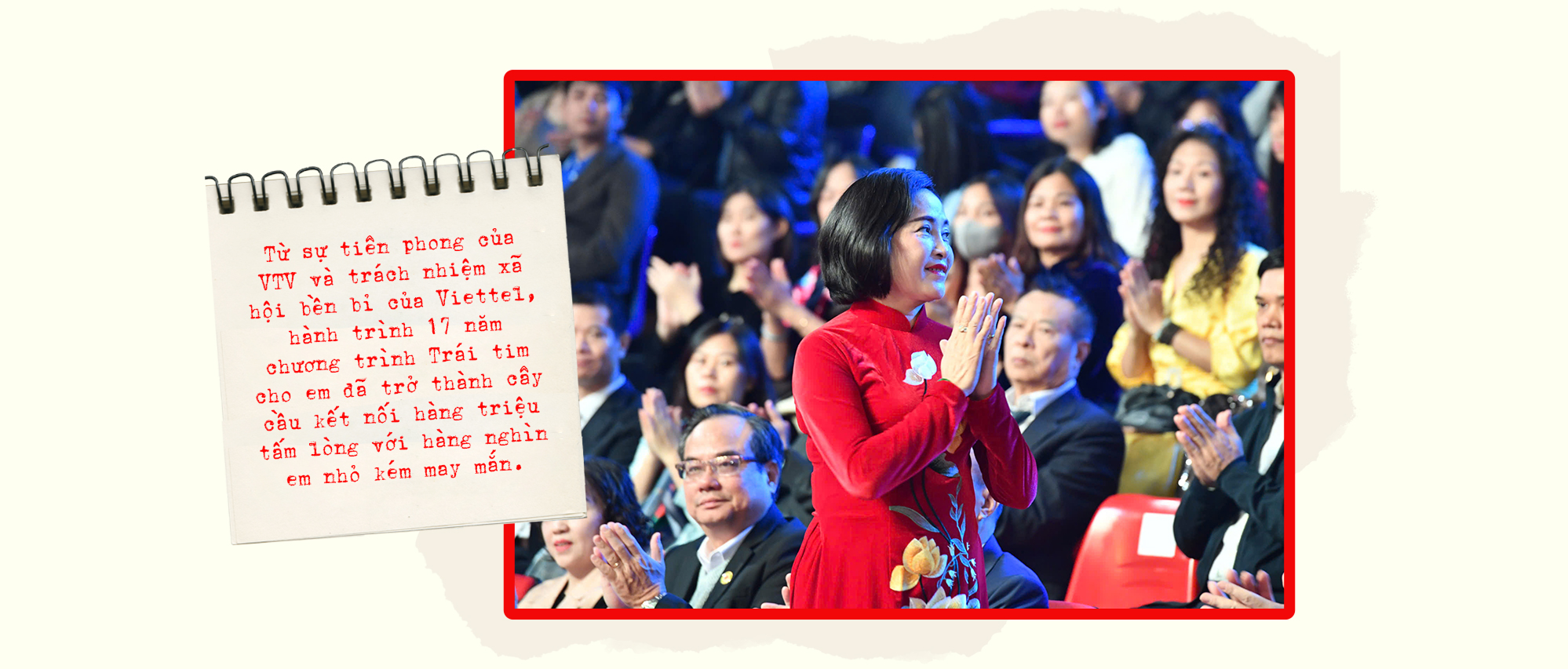 Thay mặt lãnh đạo Đảng, Nhà nước, Phó Chủ tịch Quốc hội Nguyễn Thị Thanh bày tỏ xúc động khi có mặt tại Gala nhân kỷ niệm 17 năm chương trình “Trái tim cho em”. Từ sự tiên phong của VTV và trách nhiệm xã hội bền bỉ của Viettel, hành trình này đã thật sự trở thành cây cầu kết nối hàng triệu tấm lòng với hàng nghìn em nhỏ kém may mắn.
