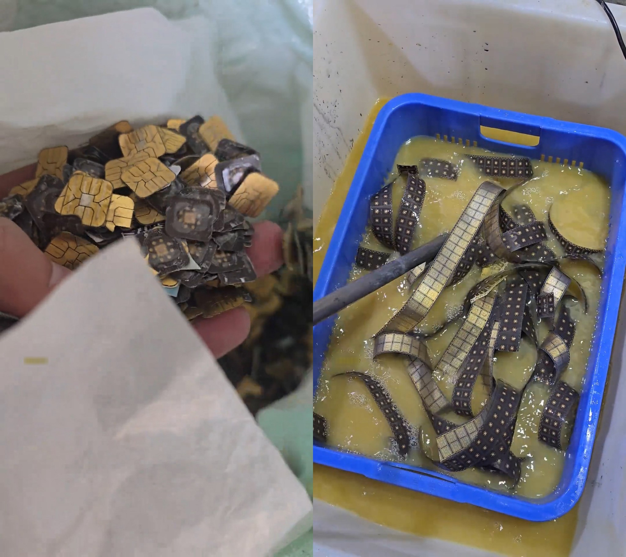 Video ghi lại quá trình tách vàng từ SIM rác và linh kiện điện tử cũ của blogger Trung Quốc lan truyền mạnh trên mạng xã hội.