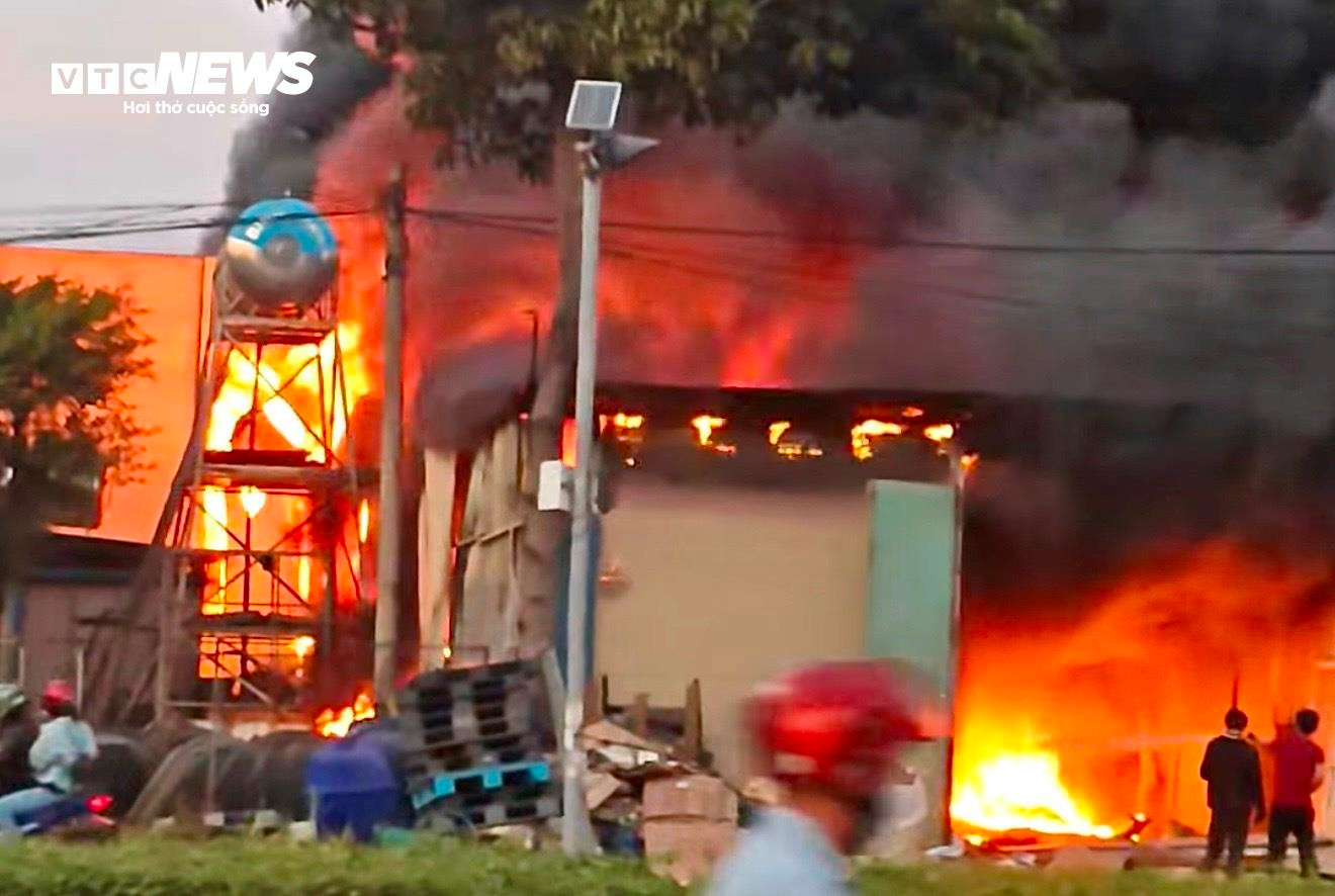 Thông tin ban đầu, khoảng 17h ngày 30/12, đám cháy bùng phát từ kho phế liệu chuyên thu gom lốp xe trên đường Mỹ Phước - Tân Vạn (gần ngã 3 Khu công nghiệp Đại Đăng).