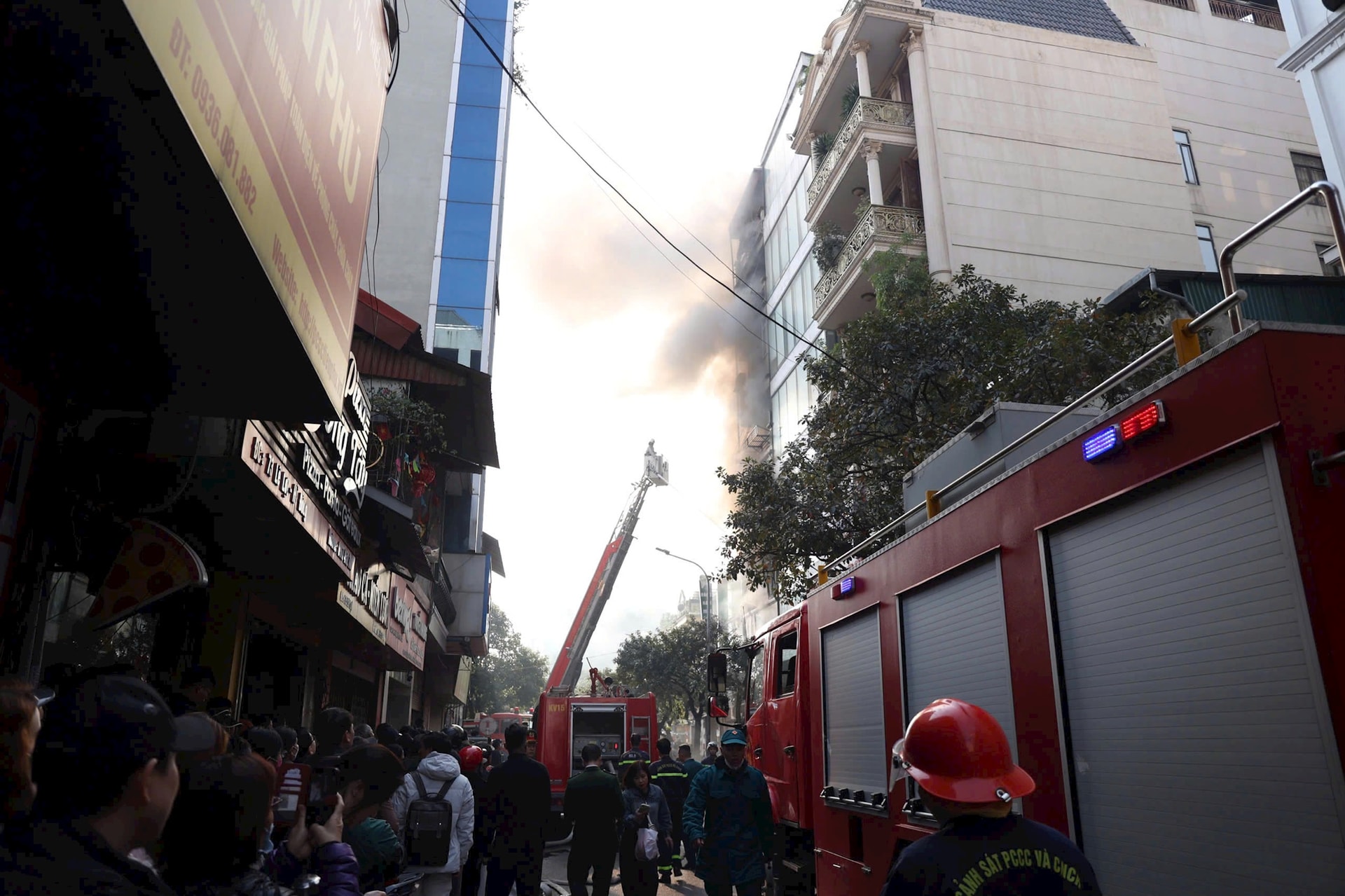 Nguồn tin trên báo VietNamNet cho hay, sau khi nhận được tin báo, Trung tâm Thông tin chỉ huy Công an TP Hà Nội đã khẩn trương điều động Đội Chữa cháy và cứu nạn cứu hộ khu vực số 4 và chi viện của các Đội Chữa cháy và cứu nạn, cứu hộ khu vực khác cùng cán bộ, chiến sĩ, xe chữa cháy, xe thang xuống hiện trường chữa cháy, tìm kiếm cứu nạn.