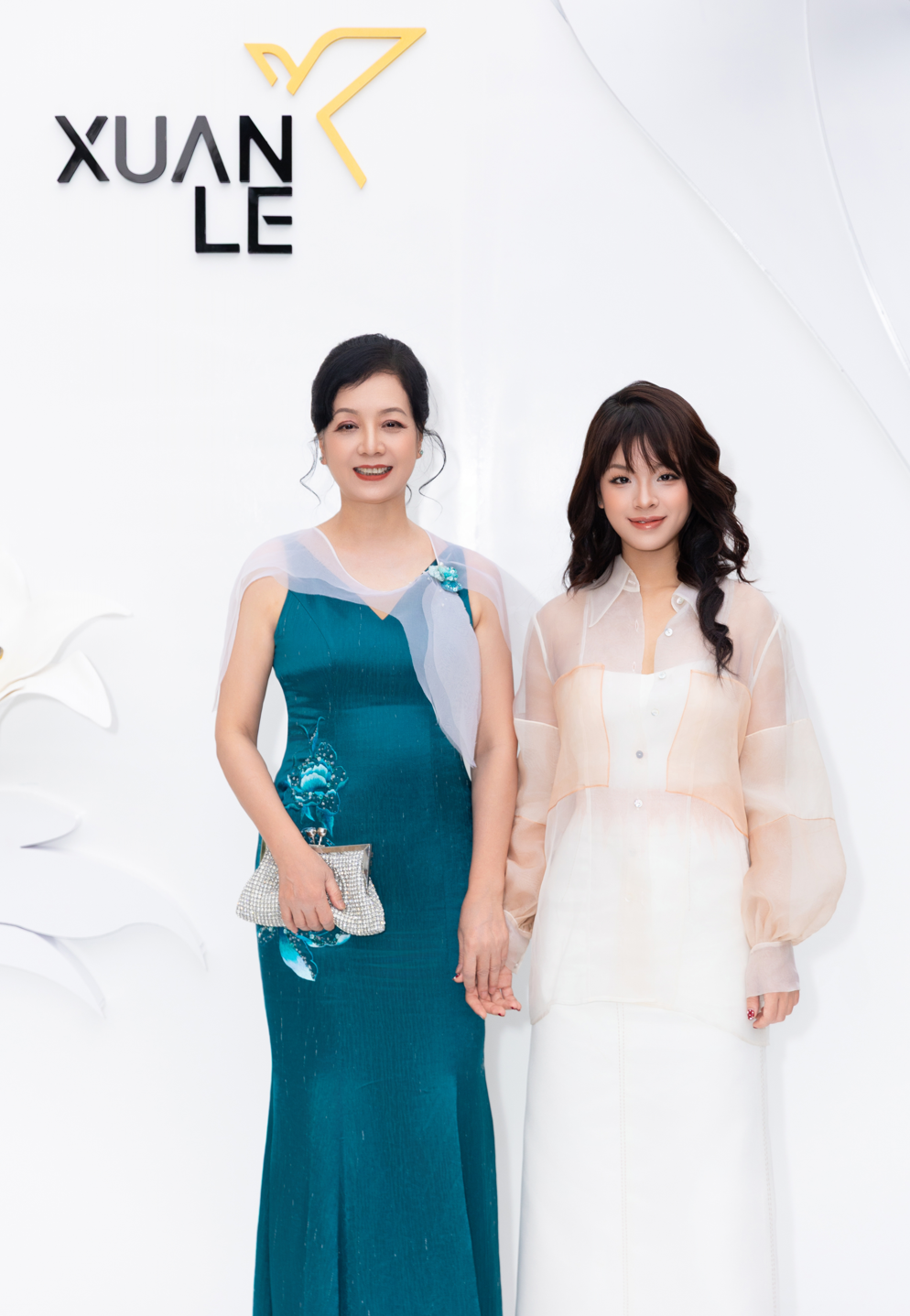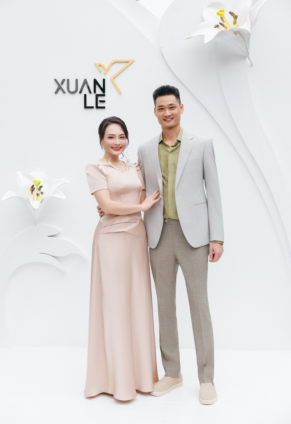 Các khách mời lựa chọn trang phục thuộc thiết kế của XUANLE với điểm chung là phom dáng mềm mại, chi tiết hoa huệ tây cách điệu và kỹ thuật xử lý chất liệu thủ công. Hoa hậu Ngọc Hân diện đầm dạ hội với chi tiết hoa ba chiều, trong khi Á hậu Thụy Vân chọn thiết kế ôm dáng, nhấn vào phần vai lấy cảm hứng từ cánh hoa. Diễn viên Bảo Thanh và chồng xuất hiện với trang phục mang tính ứng dụng cao hơn, sử dụng chất liệu đũi và lụa tơ tằm.