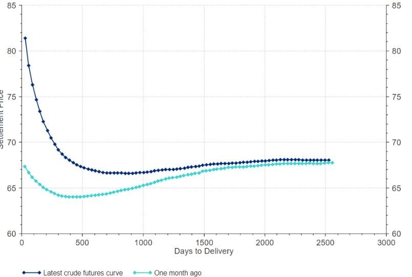Đường cong giá dầu Brent kỳ hạn dự kiến sẽ ổn định trở lại trong năm nay.