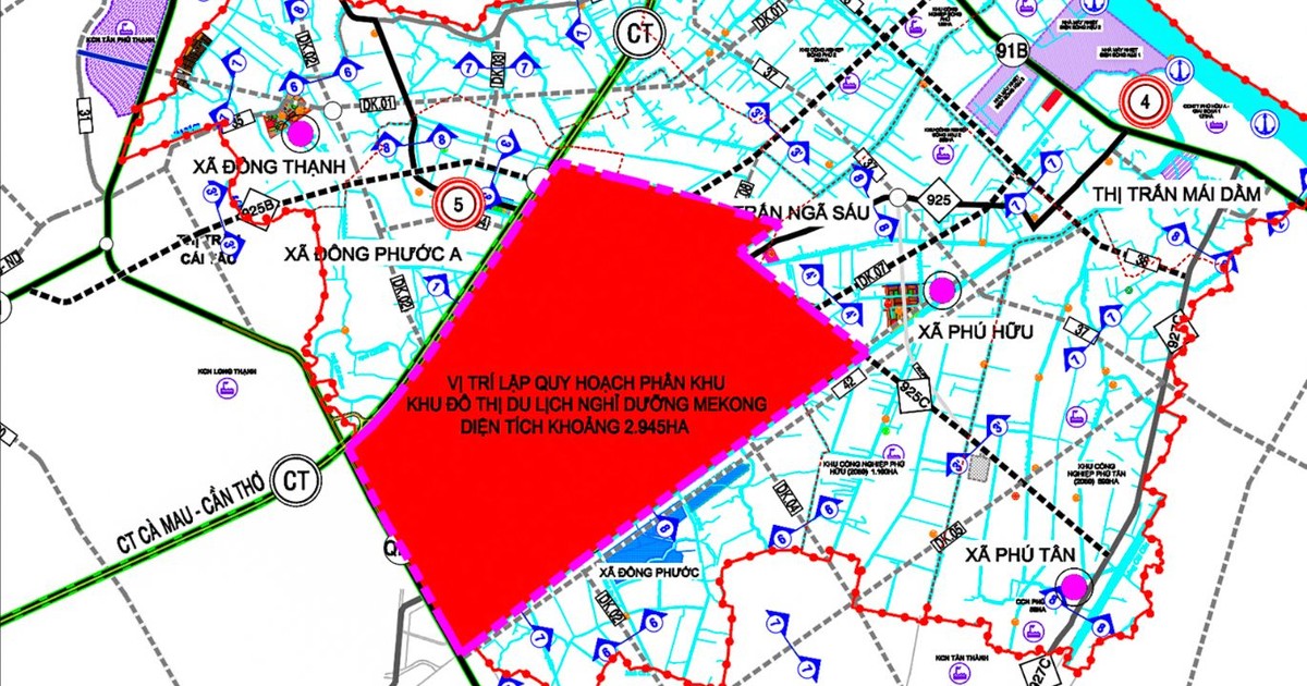 Mới đây, UBND TP. Cần Thơ đã ban hành quyết định phê duyệt Quy hoạch phân khu tỷ lệ 1/2.000 đối với dự án Khu đô thị du lịch nghỉ dưỡng Mekong. Khu vực lập quy hoạch có diện tích khoảng 2.945 ha, với quy mô dân số dự kiến khoảng 300.000 người.