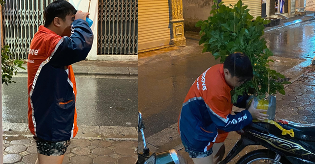 Câu chuyện bắt đầu từ một đơn cây cảnh được đặt hỏa tốc qua sàn thương mại điện tử. Sau khi phía người bán chuẩn bị xong đơn, bạn shipper lập tức lên đường, chở chậu cây Hạnh phúc cao khoảng 1m2, nặng hơn 5kg từ Bạch Mai đến Ba Đình.