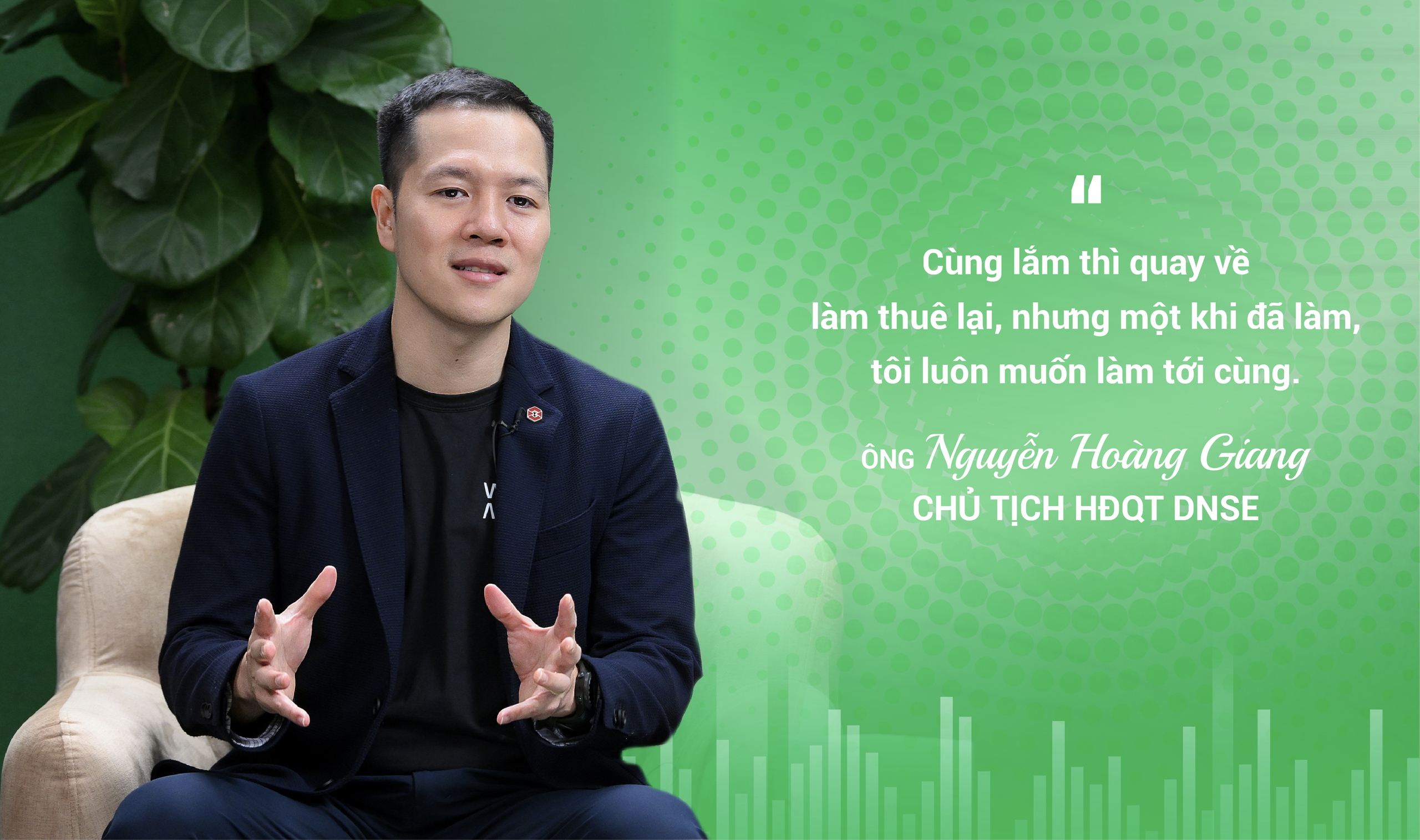 Năm 2018, tôi bắt đầu tìm một con đường mới cho riêng mình, muốn làm một điều gì đó nhỏ hơn, vui hơn và thực sự là của riêng bản thân. Lúc đó, tôi chỉ đơn giản nghĩ rằng tạo nên một nền tảng giao dịch thực sự hay và tốt cho nhà đầu tư. Sau 7 năm, tôi đã xây dựng được DNSE, công ty chứng khoán niêm yết trên sàn HOSE với mã cổ phiếu DSE, đấy là cả quá trình rất thú vị.