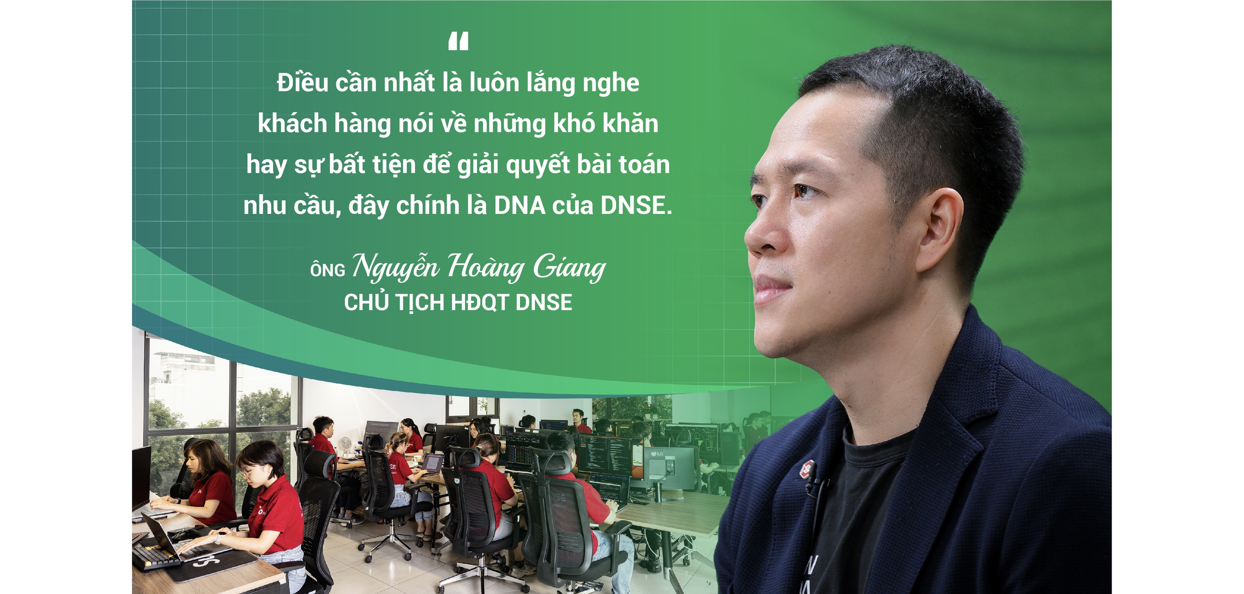 Với câu hỏi làm sao để giữ chân khách hàng, tôi cho rằng quan trọng nhất, "DNA" của DNSE là luôn luôn đổi mới và lắng nghe hàng ngày. Những người làm sản phẩm, cũng như lãnh đạo của DNSE đều trực tiếp gặp gỡ khách hàng, lắng nghe yêu cầu và tâm tư của họ, bên cạnh những chăm sóc thông thường. Điều cần nhất là luôn lắng nghe khách hàng nói về những khó khăn hay sự bất tiện để giải quyết bài toán nhu cầu của họ, đây chính là DNA của doanh nghiệp.