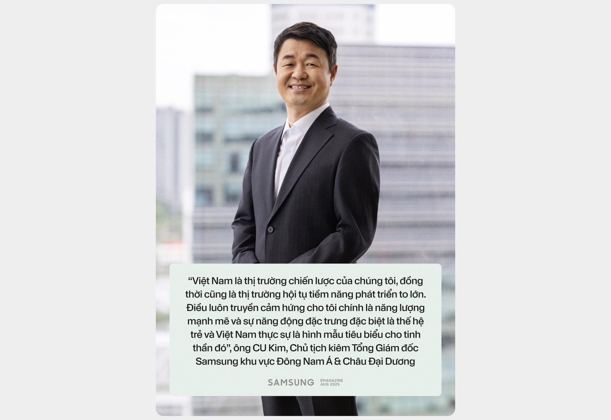 "Chúng tôi không chỉ kết nối các thiết bị – chúng tôi còn nâng tầm trải nghiệm người dùng ở mọi điểm chạm, để mọi người có thể làm ít hơn nhưng tận hưởng nhiều hơn", Ông CU Kim, Chủ tịch kiêm Tổng Giám đốc Samsung khu vực Đông Nam Á & Châu Đại Dương nhấn mạnh.