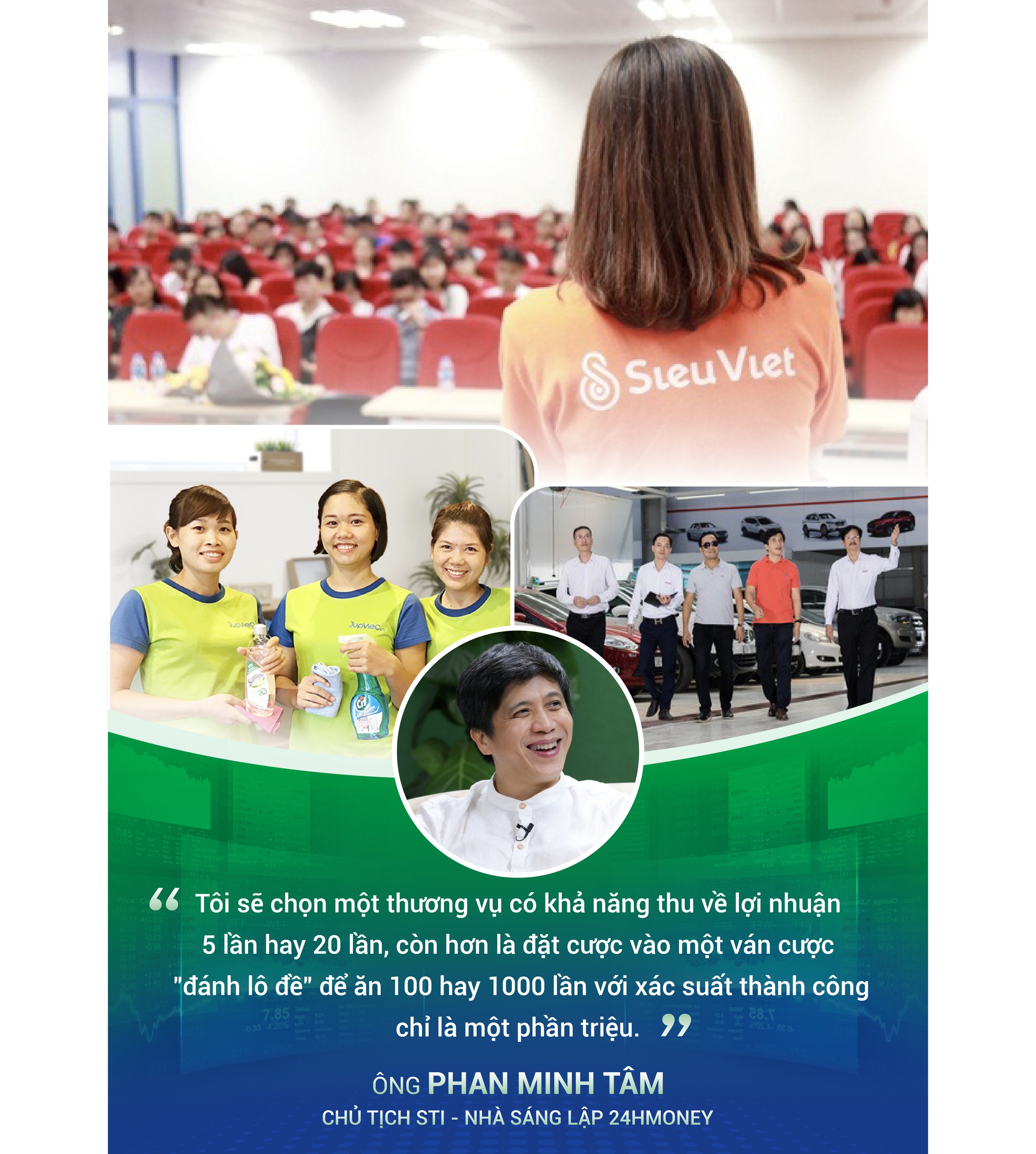 Đó là lý do chúng tôi đầu tư vào các lĩnh vực như Jupviec, 30Shine – những ngành phục vụ cho nhu cầu thiết thực của thị trường nhưng chưa được khai thác hiệu quả. Chúng tôi tin rằng mình có thể hỗ trợ họ phát triển lên một tầm cao mới, ở quy mô lớn.