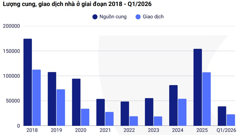 Trình bày báo cáo thị trường bất động sản Việt Nam quý I/2026, bà Phạm Thị Miền, Phó Viện trưởng Viện nghiên cứu đánh giá thị trường bất động sản Việt Nam (VARS IRE) cho biết, quý vừa qua, toàn thị trường ghi nhận khoảng 52.000 sản phẩm bất động sản nhà ở thương mại mở bán, trong đó nguồn cung mới đạt khoảng 38.000 sản phẩm, giảm nhẹ so với quý trước nhưng vẫn gấp 2,5 lần cùng kỳ năm 2025.