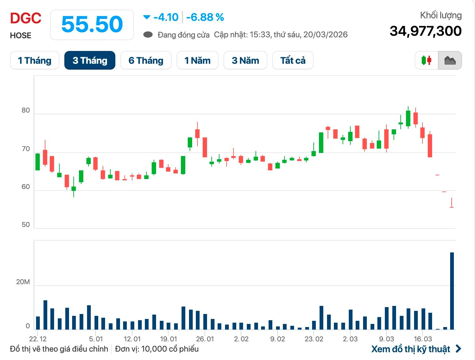 Cổ phiếu DGC được nhà đầu tư "gom" đột biến trong phiên 20/3.