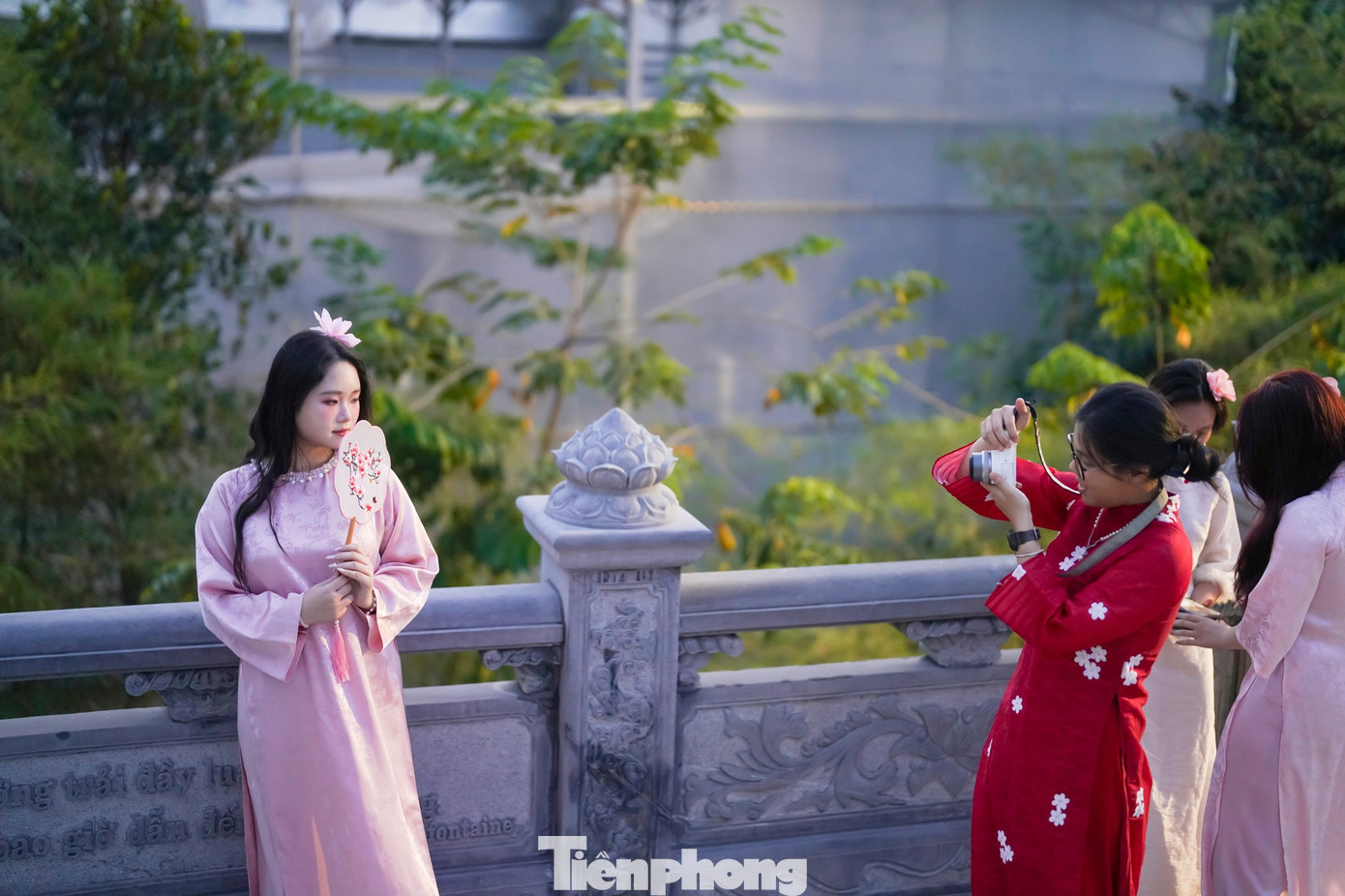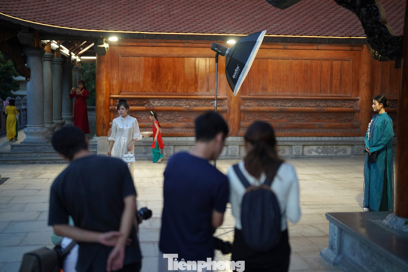 "Nhóm mình chuẩn bị áo dài từ sớm, ưu tiên những gam màu hài hòa với không gian tu viện. Việc dùng thêm đèn cầm tay để tạo ánh sáng dịu, tránh dùng flash mạnh làm ảnh hưởng đến không gian chung và giữ nguyên vẻ tĩnh mịch của cảnh chùa," Minh Thư (22 tuổi, sinh viên) chia sẻ.