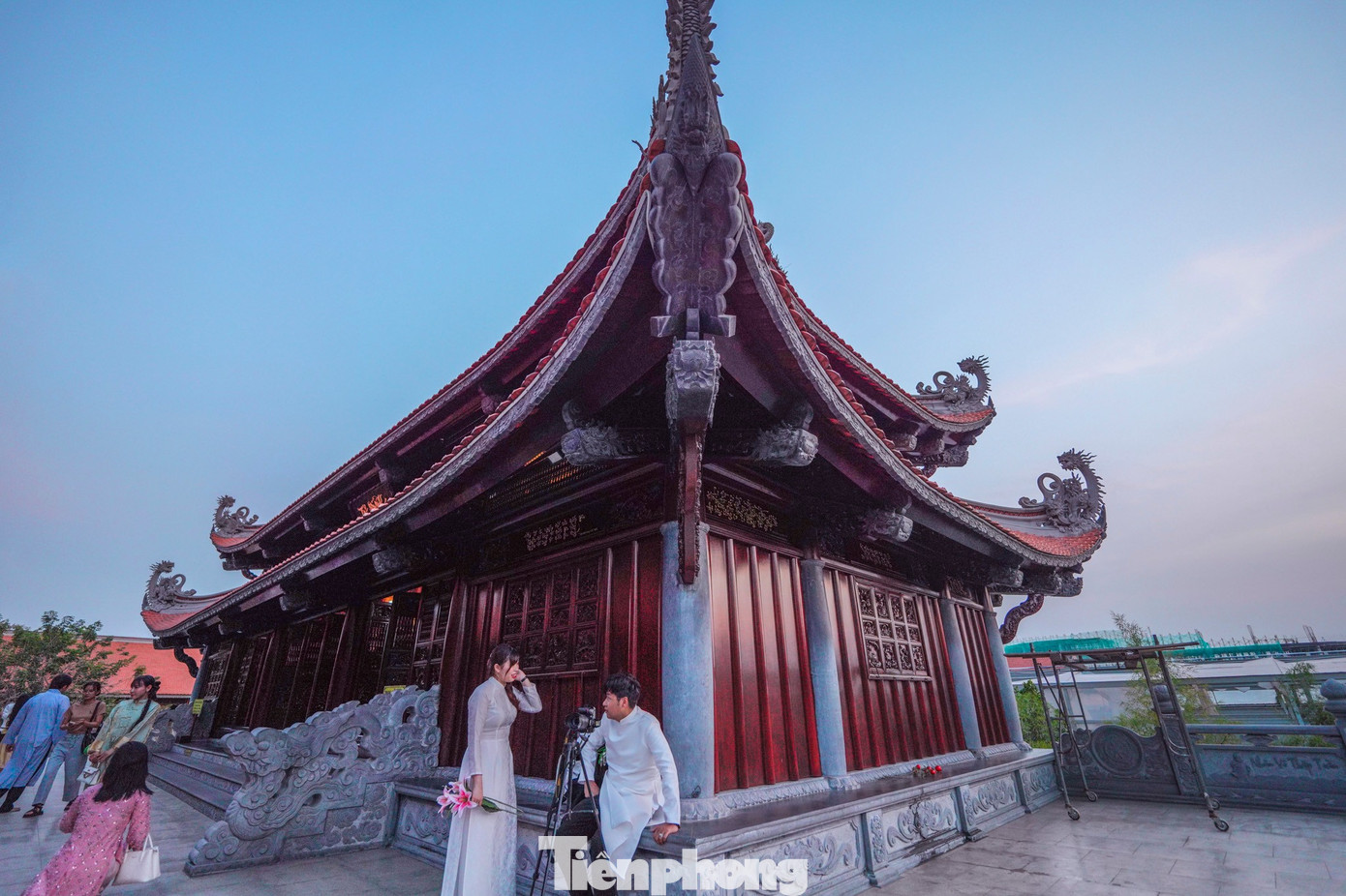 "Chụp ảnh ở đây, tụi mình tự nhắc nhau đi nhẹ, nói khẽ. Khoác lên bộ áo dài giữa không gian này, tự nhiên thấy lòng mình dịu lại, từng cử động cũng trở nên chậm rãi và ý thức hơn", Quốc Huy (25 tuổi, nhiếp ảnh gia tự do) chia sẻ.