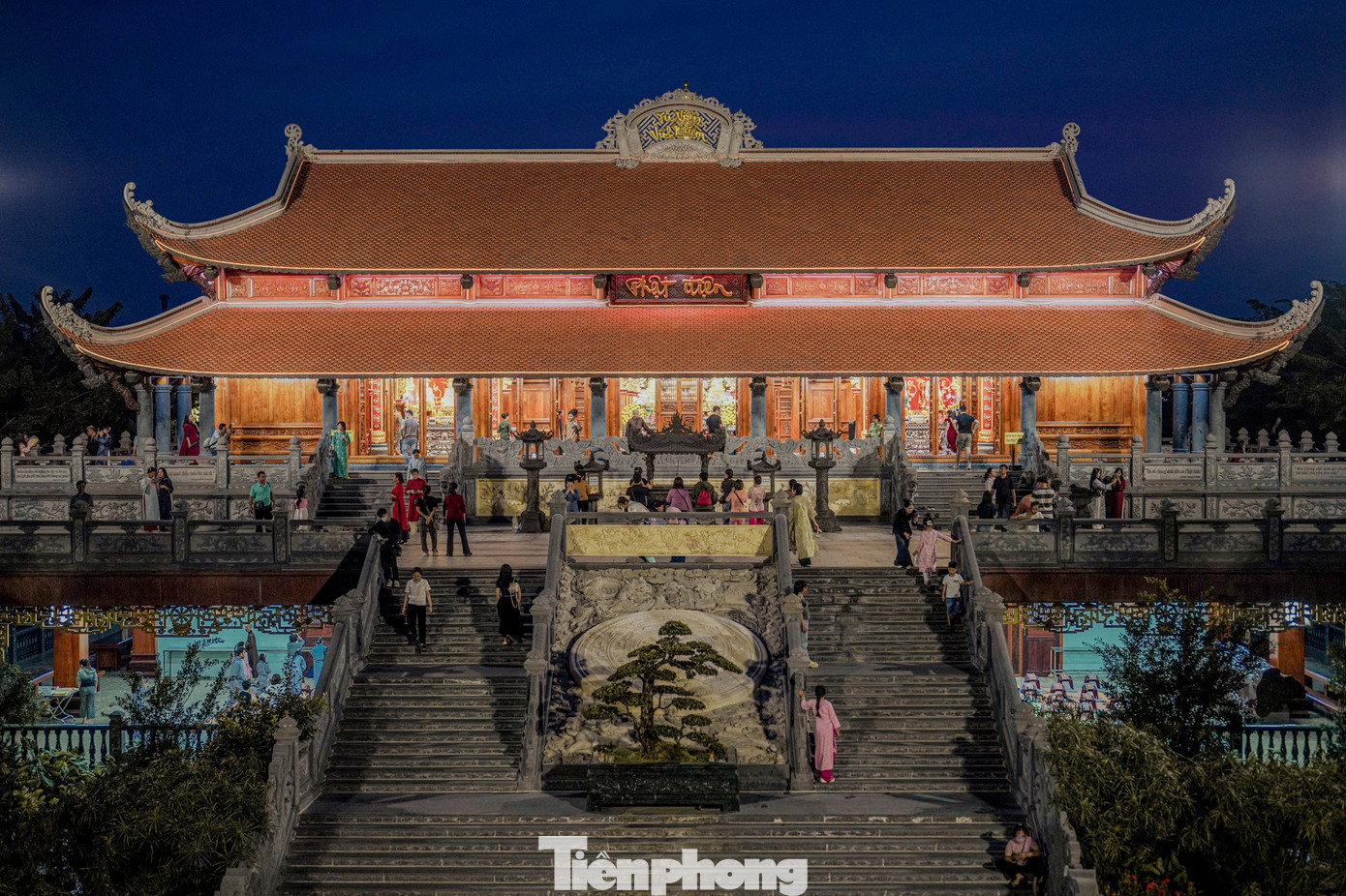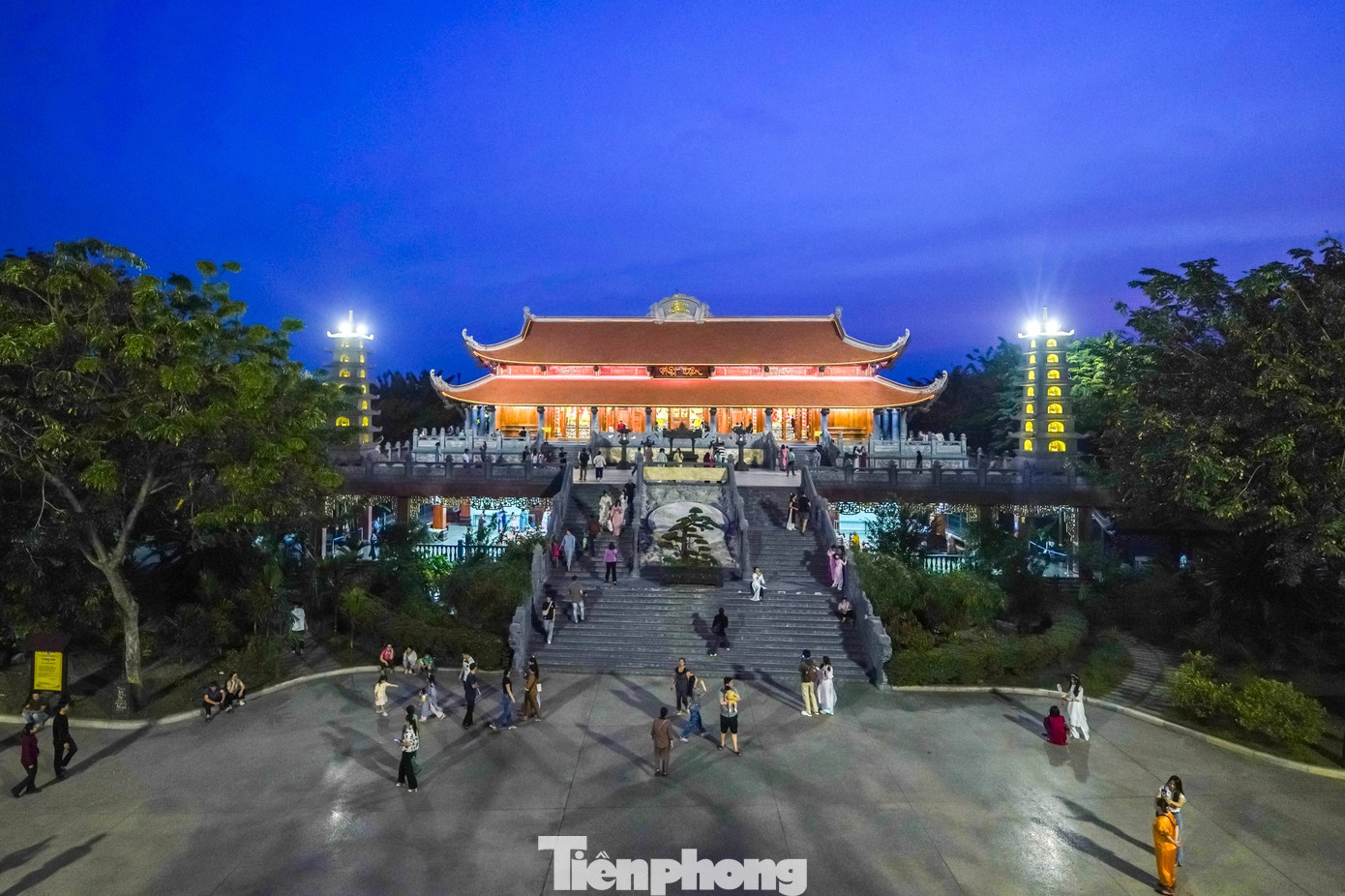 Khi phố thị lên đèn, Tu viện Vĩnh Nghiêm lại khoác lên một diện mạo hoàn toàn khác. Những ánh đèn vàng hắt ngược lên tháp cao và dãy hành lang đá, tạo nên chiều sâu thị giác vừa linh thiêng, vừa đậm chất điện ảnh. Sức hút huyền ảo ấy khiến nhiều bạn trẻ sẵn sàng quay lại nhiều lần, chỉ để lưu giữ trọn vẹn khoảnh khắc tà áo dài thướt tha trong dịp xuân.
