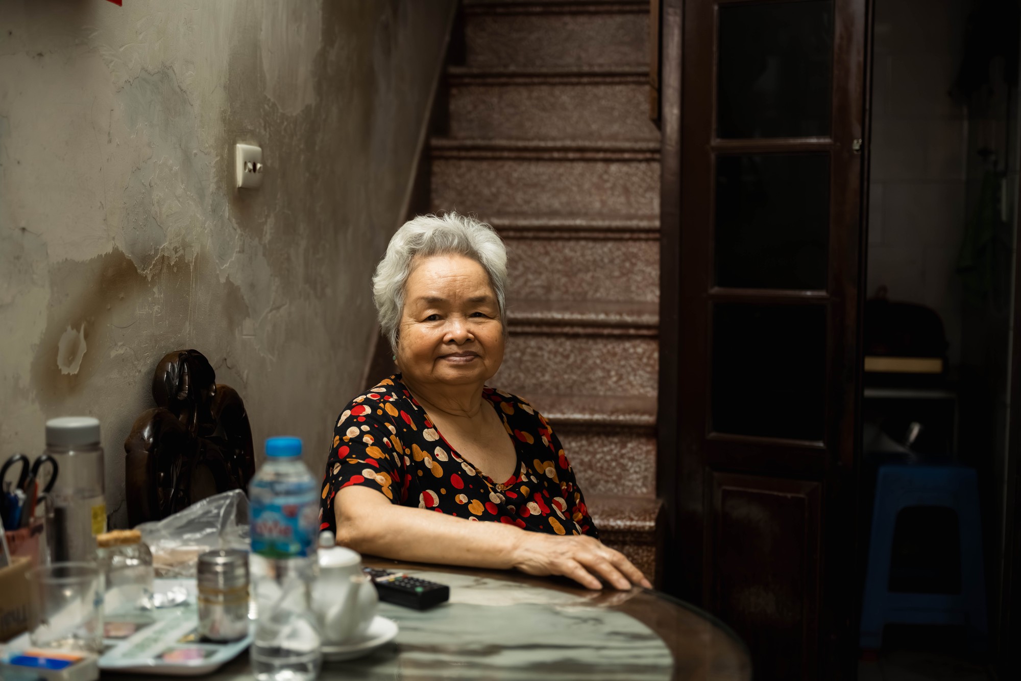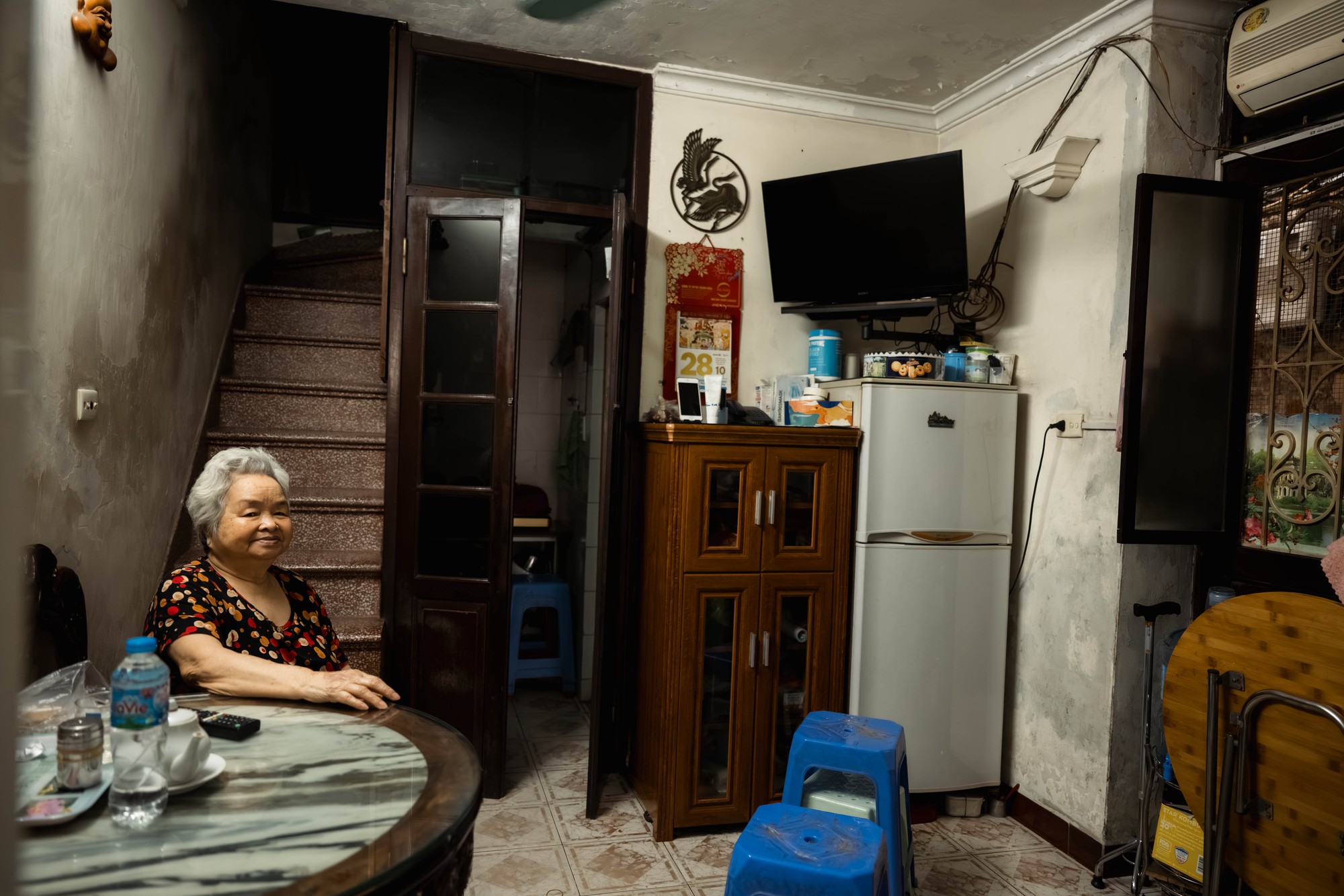 “Cả khu khi đó khoảng 600 đến 700 mét vuông được chia cho nhiều nhà. Ngày xưa chúng tôi 23 đến 25 hộ, lúc đông nhất là 27 hộ. Nhà tôi ở vốn là phòng khách của biệt thự, đẹp lắm, khoảng 80 mét vuông, có hai cột trang trí rất đẹp. Tổng cộng cao 4 mét 2 nên tôi mới làm chia làm gác xép, trên dưới đều đủ rộng để đi lại.