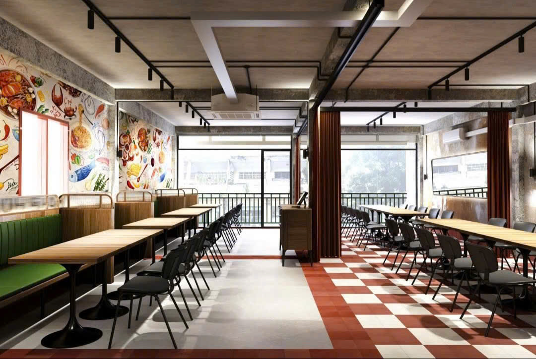 Không gian bên trong nhà hàng đậm chất Mỹ phóng khoáng và hiện đại