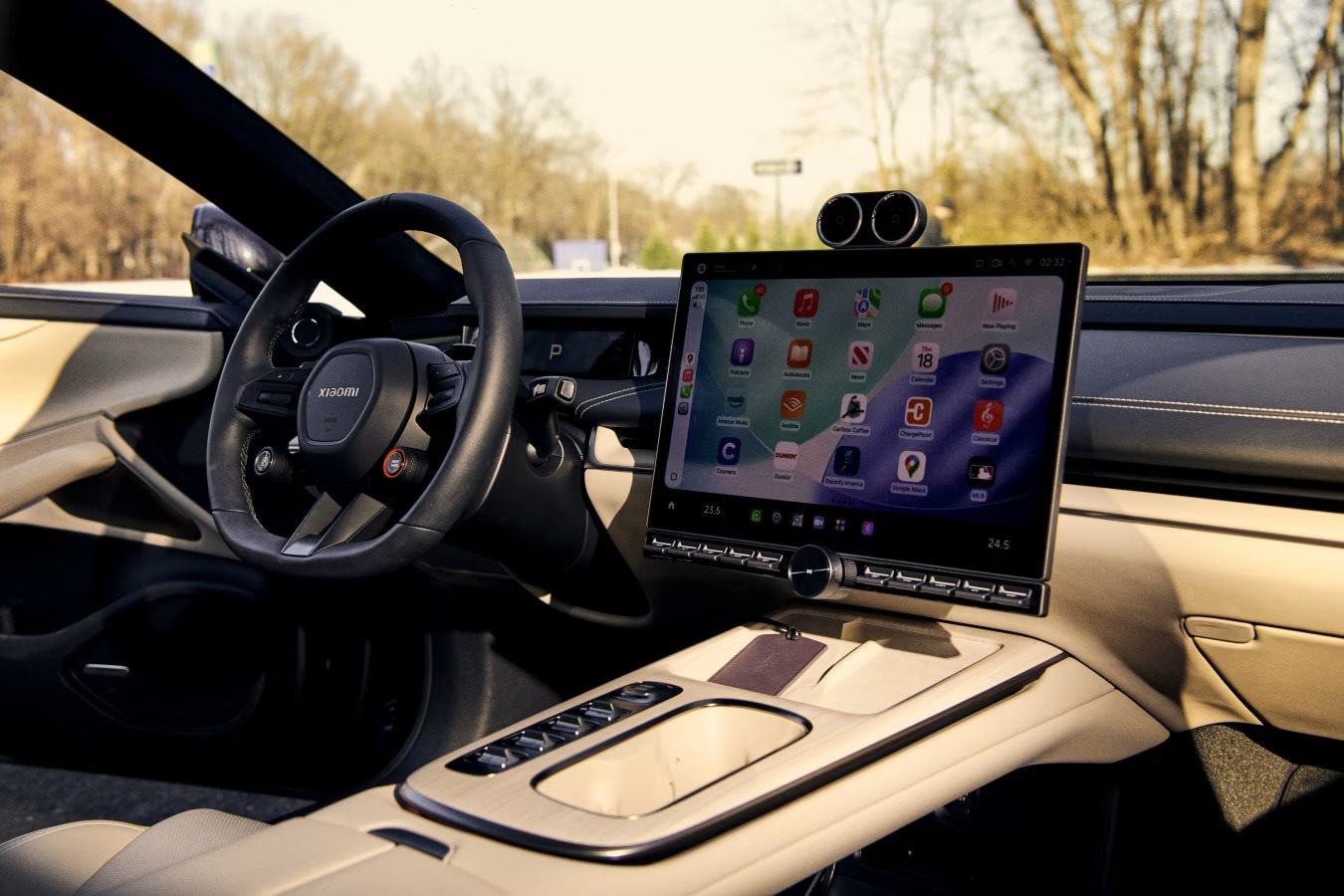 SU7 Max mang lại cảm giác chính xác của một sản phẩm từ công ty công nghệ đi làm xe hơi, chứ không phải một hãng xe cố nhồi nhét công nghệ vào. Màn hình giải trí khổng lồ 16,1 inch chạy HyperOS – hệ điều hành dựa trên nền tảng Android của hãng. Nó chứa đầy các ứng dụng – đa số là tiếng Trung mà tôi không hiểu gì cả. Tuy nhiên, tôi lại cực kỳ rành Apple CarPlay, và nó hiển thị tuyệt đẹp trên màn hình lớn này.