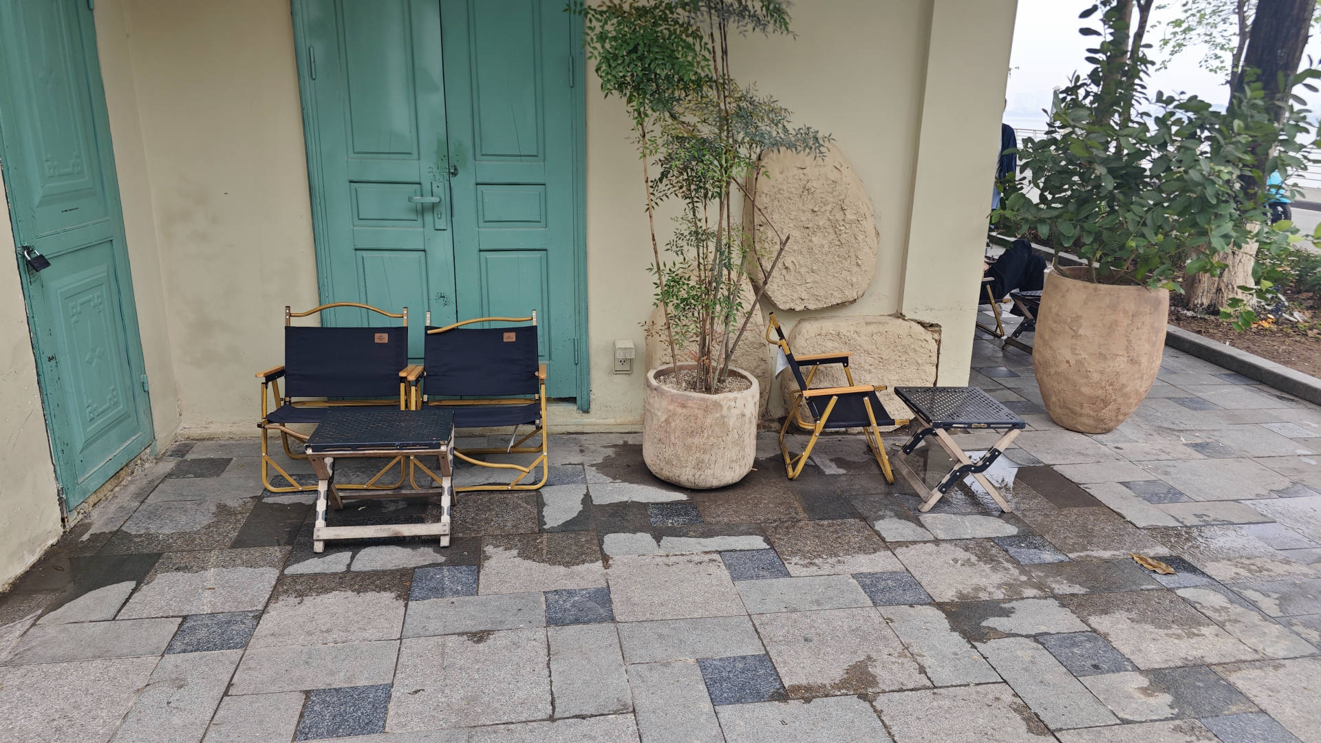 Điểm đến đầu tiên là chi nhánh Phê La Tây Hồ, một trong những mặt bằng có quy mô lớn và luôn đông đúc. Ngay từ đầu giờ sáng, khu vực cửa kính lớn đón nắng đã in hằn vô số dấu vân tay chưa được lau chùi kỹ. Bên trong quán, mặt sàn xuất hiện các vết ố và mảng bám tích tụ. Khu vực sân vườn vốn là điểm cộng lại khiến nhiều người e ngại vì mùi hôi phát sinh trực tiếp từ nắp hố ga, nghi do nước thải sinh hoạt đọng lâu ngày bên dưới.