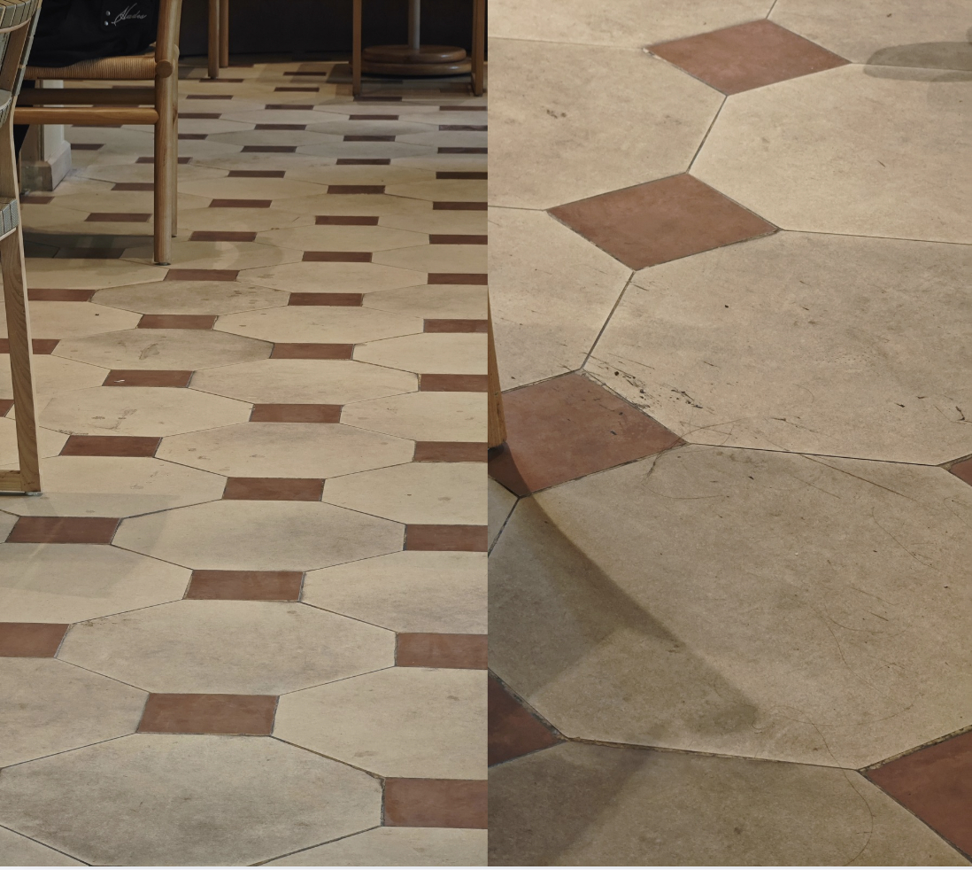 Cận cảnh cửa kính hoặc sàn nhà có vết ố tại chi nhánh Tây Hồ.