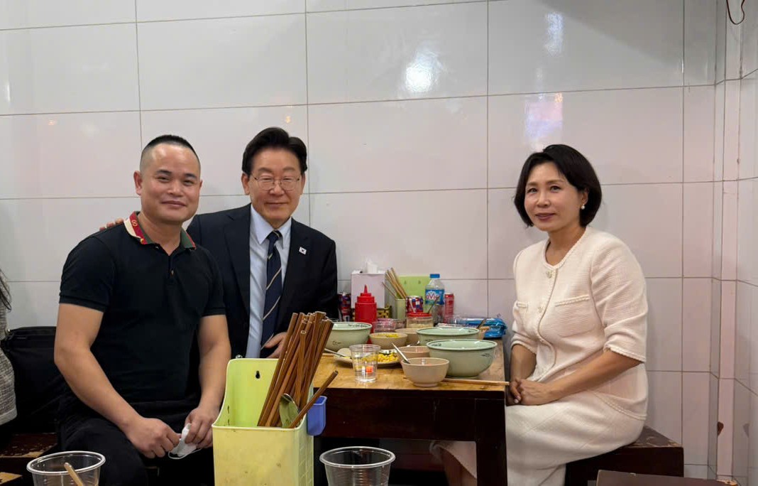 Khoảng 19h, Tổng thống Lee Jae Myung cùng phu nhân đi bộ vào quán của anh Mùi. Tổng thống chọn ngồi ở chiếc bàn phía trong cùng, còn đoàn tùy tùng hơn 10 người ngồi xung quanh ở khu vực phía ngoài.