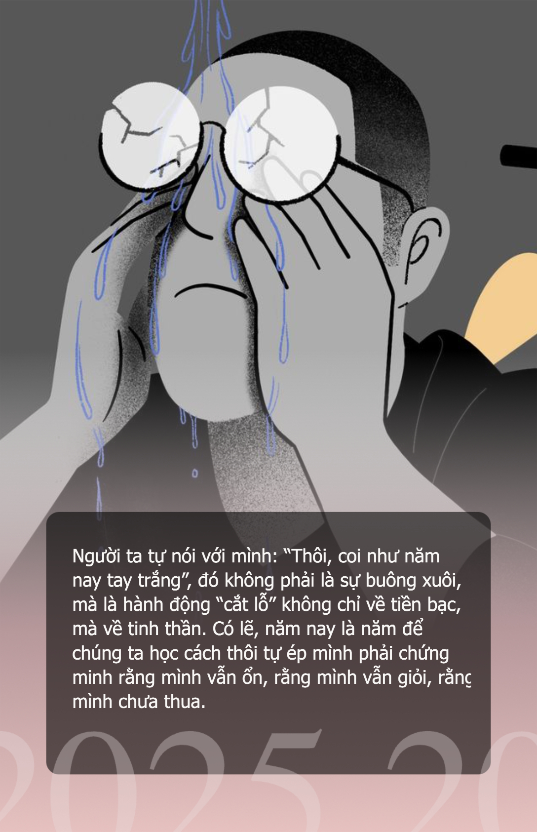 “Thôi, coi như năm nay tay trắng, tới đây cũng là giỏi lắm rồi”, đó không phải là sự buông xuôi, mà là hành động “cắt lỗ” không chỉ về tiền bạc, mà về tinh thần. Có lẽ, năm nay là năm để chúng ta học cách thôi tự ép mình phải chứng minh rằng mình vẫn ổn, rằng mình vẫn giỏi, rằng mình chưa thua.
