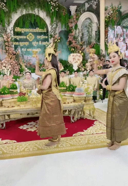 Lễ cưới tại Campuchia còn gây ấn tượng mạnh bởi không gian mang đậm màu sắc văn hóa truyền thống bản địa.