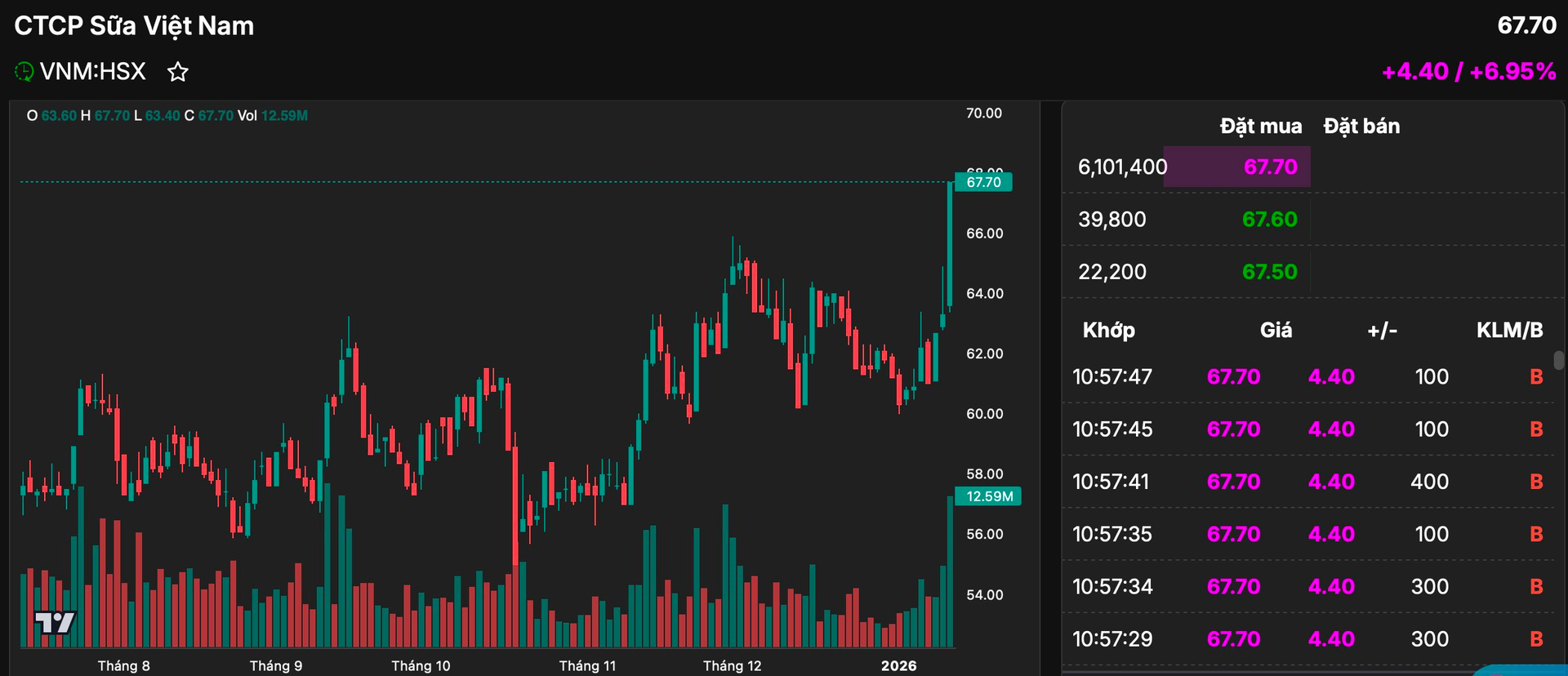 Cổ phiếu VNM đã tăng hơn 10% từ đầu năm 2026 lên mức cao nhất kể từ tháng 9/2023.
