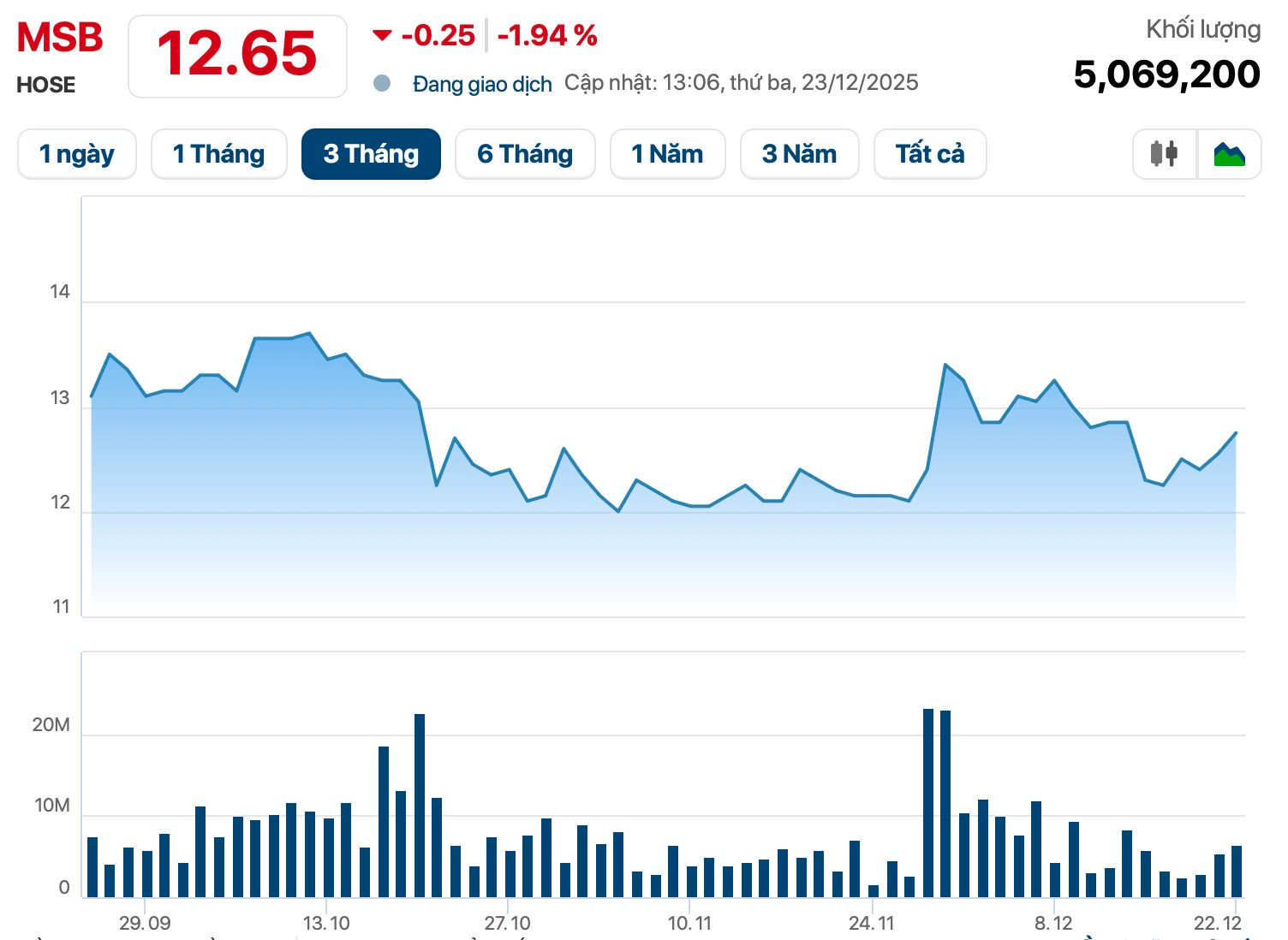 Trên sàn chứng khoán, cổ phiếu MSB sau phiên bùng nổ với thông tin VNPT thoái vốn hồi cuối tháng 11, đã quay đầu điều chỉnh. Cổ phiếu này hiện đang giao dịch dưới vùng giá 13.000 đồng/cp. Vốn hóa thị trường vào khoảng gần 40.000 tỷ đồng.