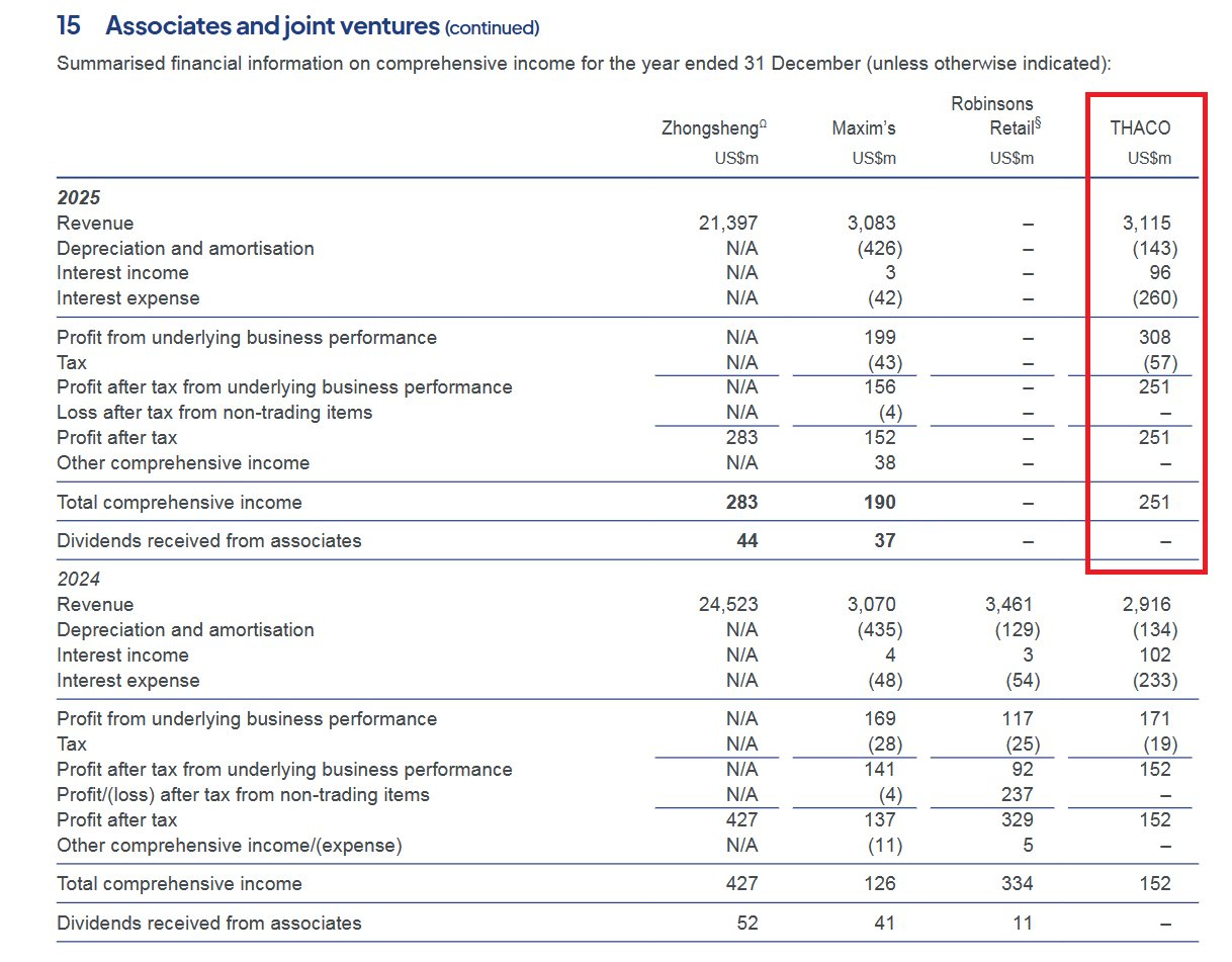 Jardines Matheson đang nắm giữ khoảng 27% lợi ích tại THACO. Tính đến cuối năm 2025, giá trị ghi sổ của khoản đầu tư này vào THACO đạt khoảng 723 triệu USD (tương đương gần 18.800 tỷ đồng).