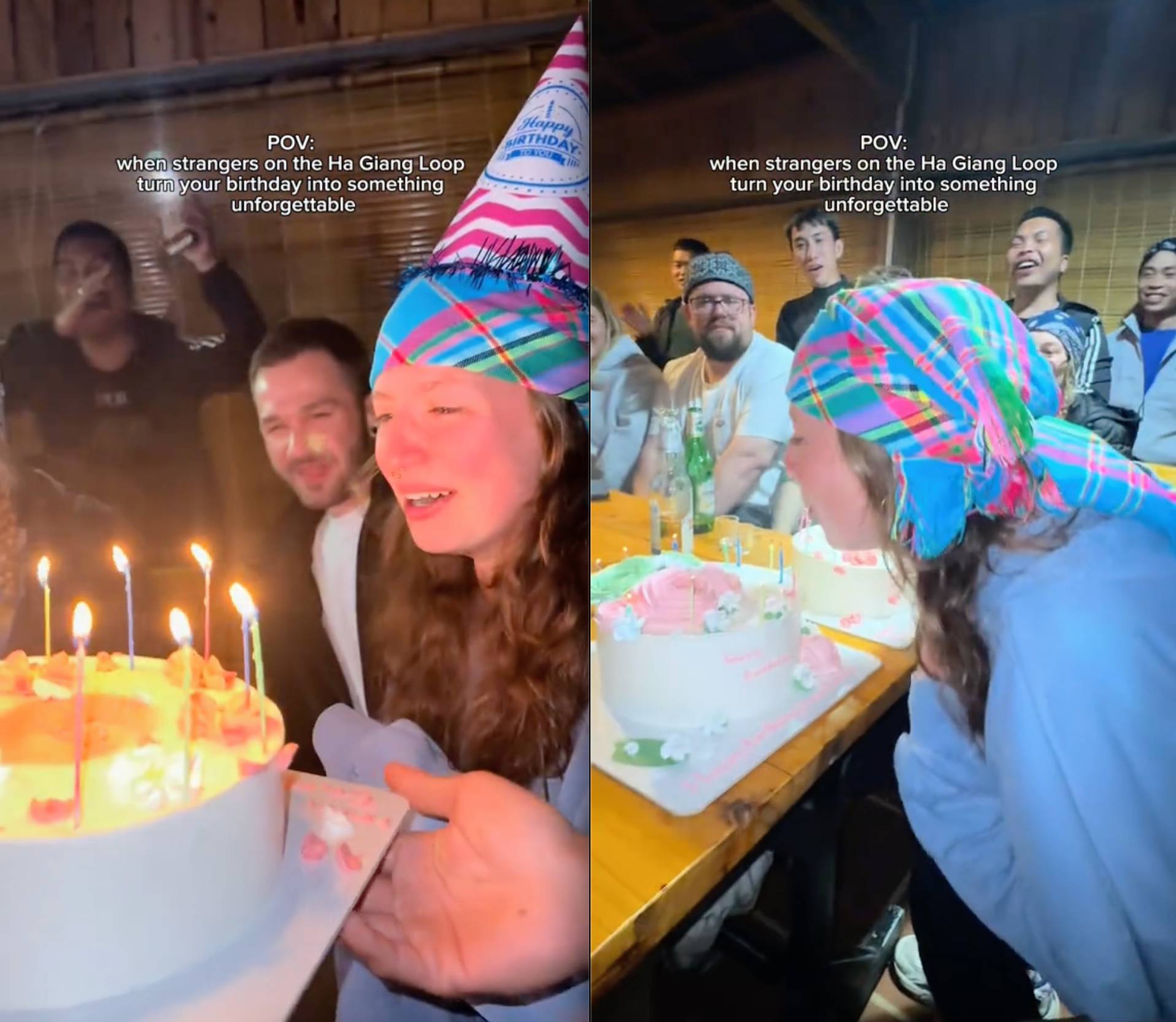 Trong đoạn video được lan truyền, cô gái viết: "Khi những người xa lạ trên cung đường Hà Giang biến ngày sinh nhật của bạn thành một kỷ niệm không thể nào quên." Cô còn khẳng định đây chính là "sinh nhật tuyệt vời nhất từ trước đến nay" mà mình từng có.