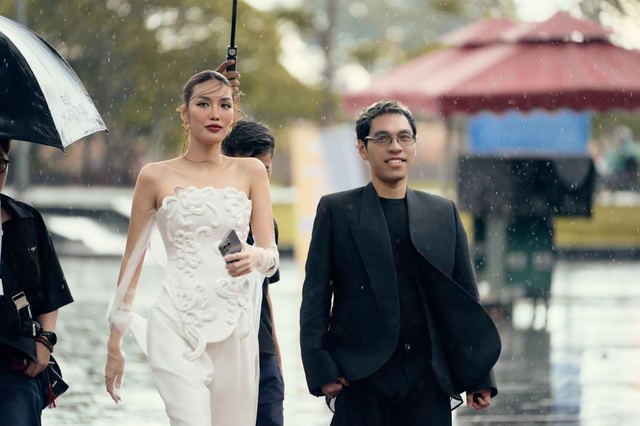 Dù trời mưa, dàn khách mời nổi tiếng vẫn nán lại trên thuyền để theo dõi toàn bộ phần trình diễn. Những tràng vỗ tay vang lên sau mỗi thiết kế là minh chứng cho sự đồng cảm và ủng hộ dành cho tâm huyết của NTK Quỳnh Anh và ê-kíp.