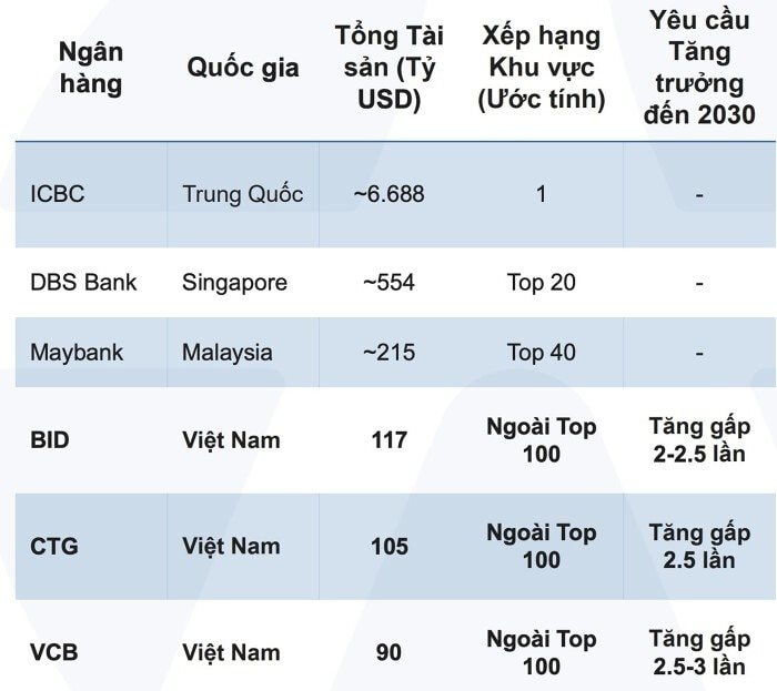 Quy mô tổng tài sản của Ngân hàng Big4 Việt Nam so với khu vực. Nguồn: YSVN.