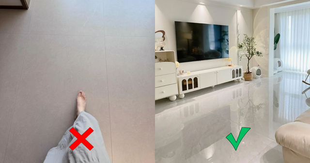 Giờ ai cũng chuộng phong cách tối giản. Gạch lát thẳng một mạch từ phòng khách ra ban công trông vừa rộng rãi vừa đẹp. Mỗi lần lau nhà cũng nhàn hơn hẳn, bạn đỡ phải kỳ cọ từng rãnh nhỏ xíu do cắt gạch tạo hình.