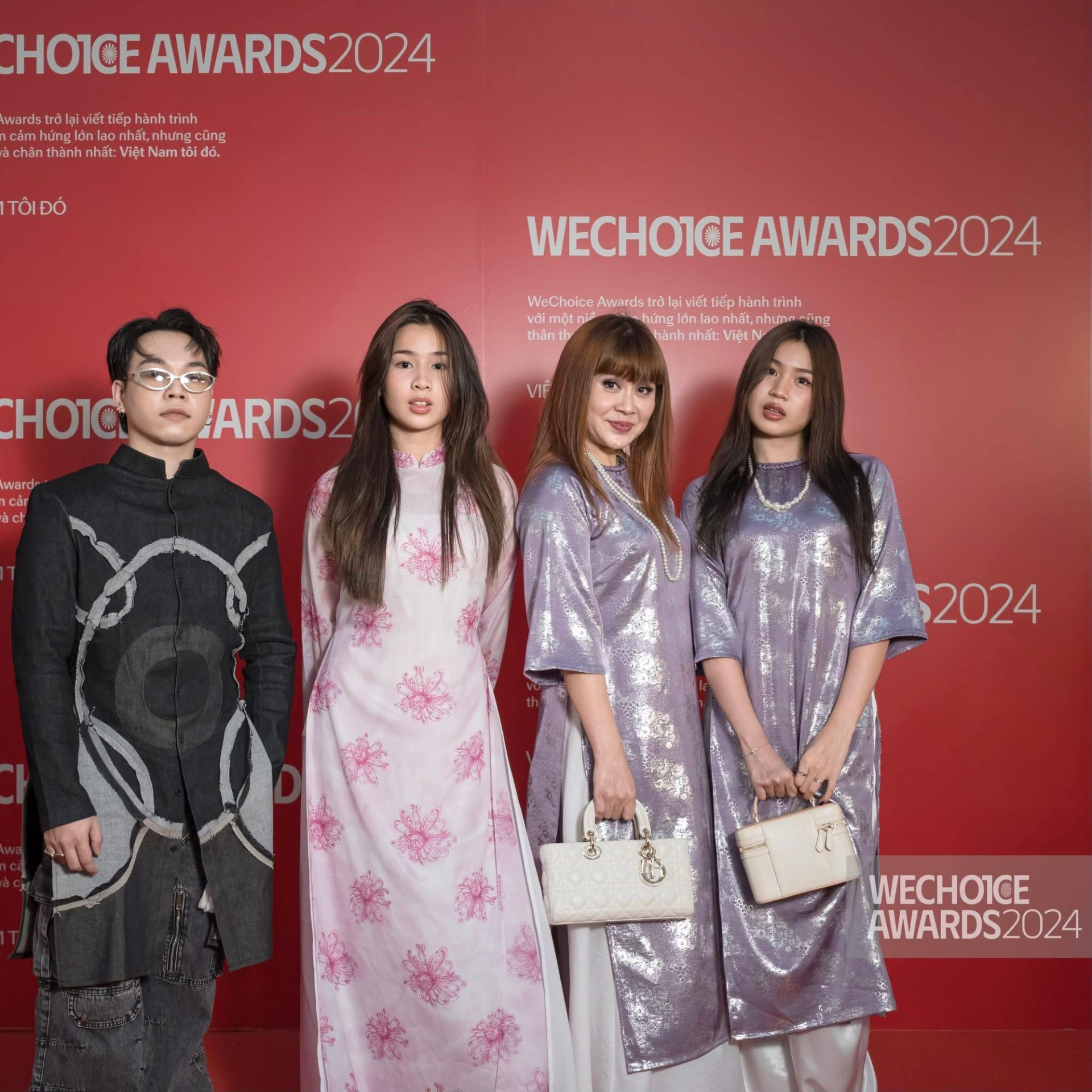 Mina Hồ (áo hồng) cùng với dì - Lưu Thiên Hương và chị họ - Mimi Lưu tại WeChoice Awards 2024