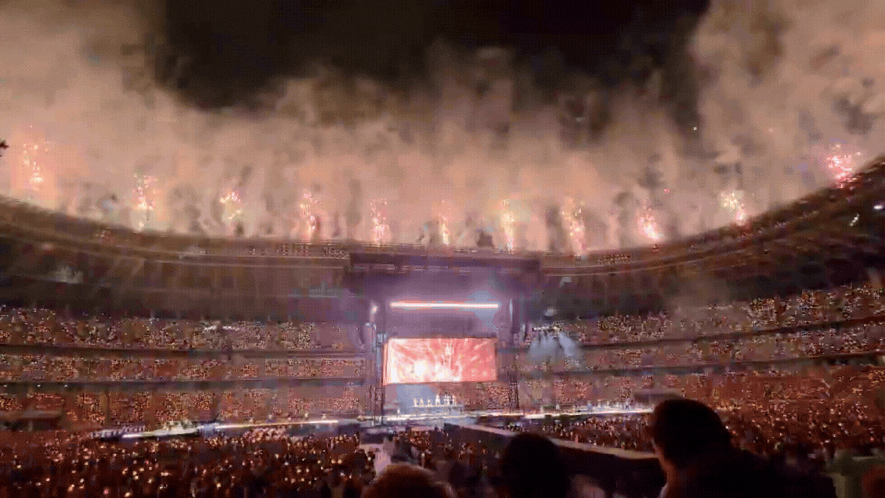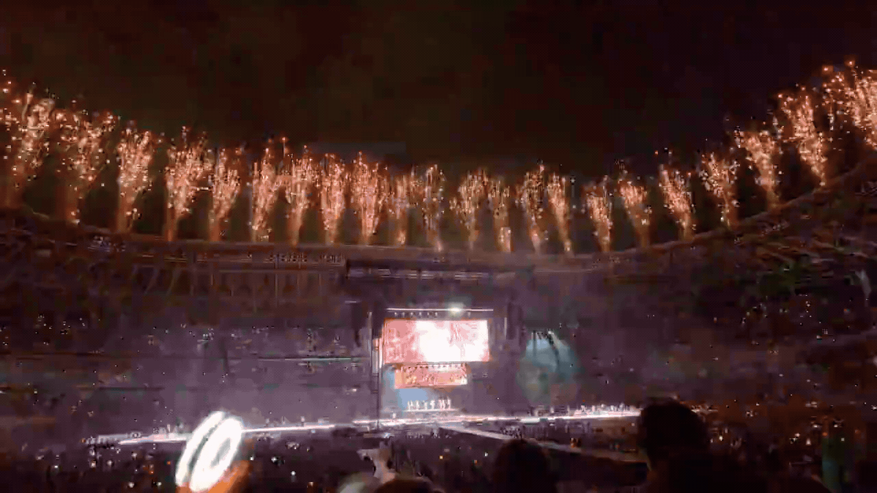 Điểm nhấn viral nhất trên mạng xã hội những ngày qua chính là màn pháo hoa rợp trời trong tiết mục One Spark. Khi đoạn cao trào gần kết của bài hát vang lên, hệ thống pháo hoa được bắn lên từ mái vòm sân vận động tạo nên khung cảnh rực rỡ và choáng ngợp. Màn trình diễn này được nhiều người hâm mộ ví von hệt như một lễ hội quốc gia tầm cỡ chứ không đơn thuần là concert của nhóm nhạc thần tượng.