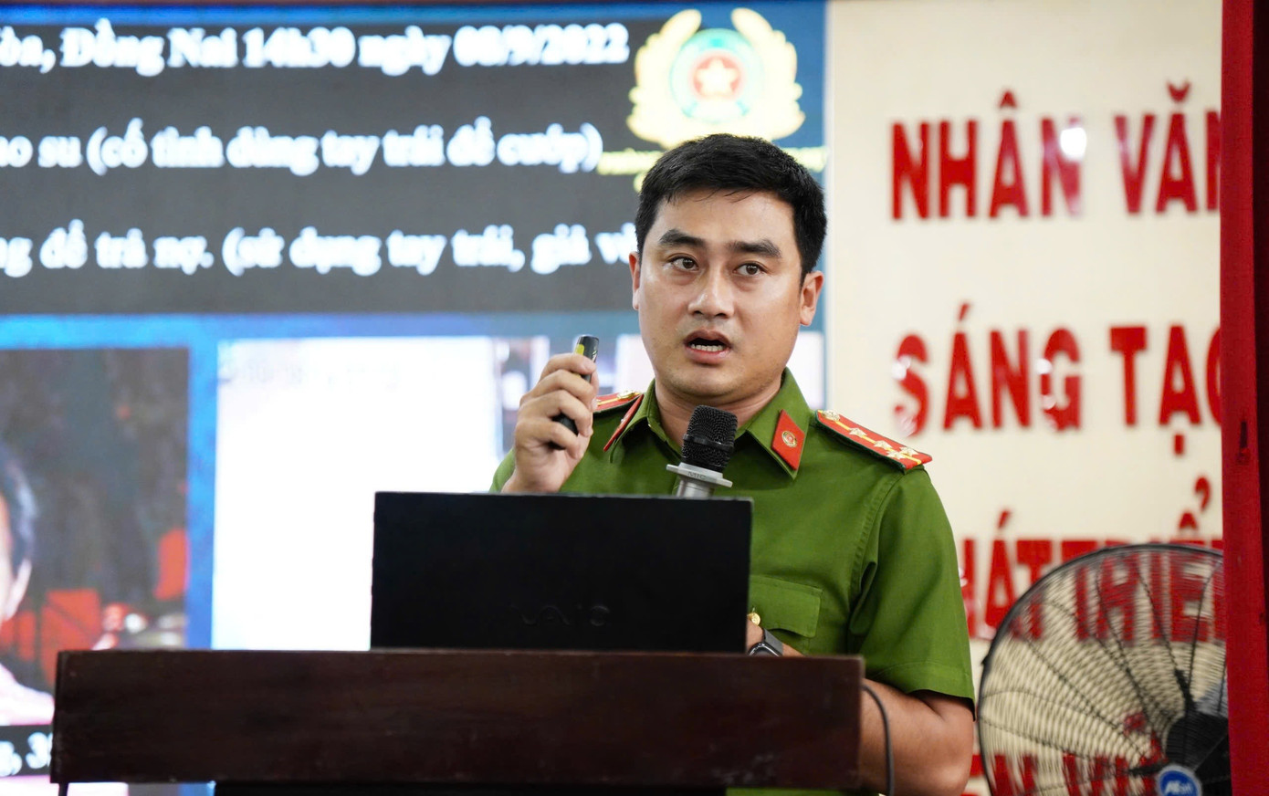 Đại úy Thịnh chỉ cách nhận biết đối tượng có nguy cơ đến các chủ doanh nghiệp.