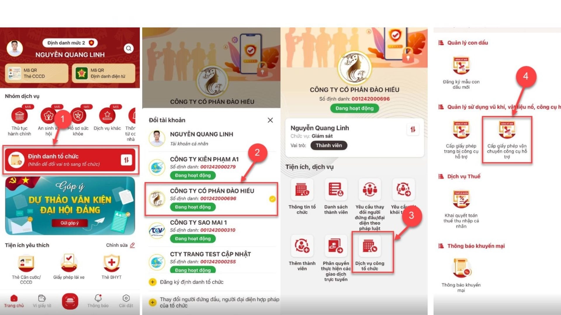 Chức năng này áp dụng đối với tài khoản định danh điện tử mức độ 2 đang hoạt động, là thành viên của tổ chức và được phân quyền thực hiện thủ tục cấp giấy phép vận chuyển công cụ hỗ trợ.