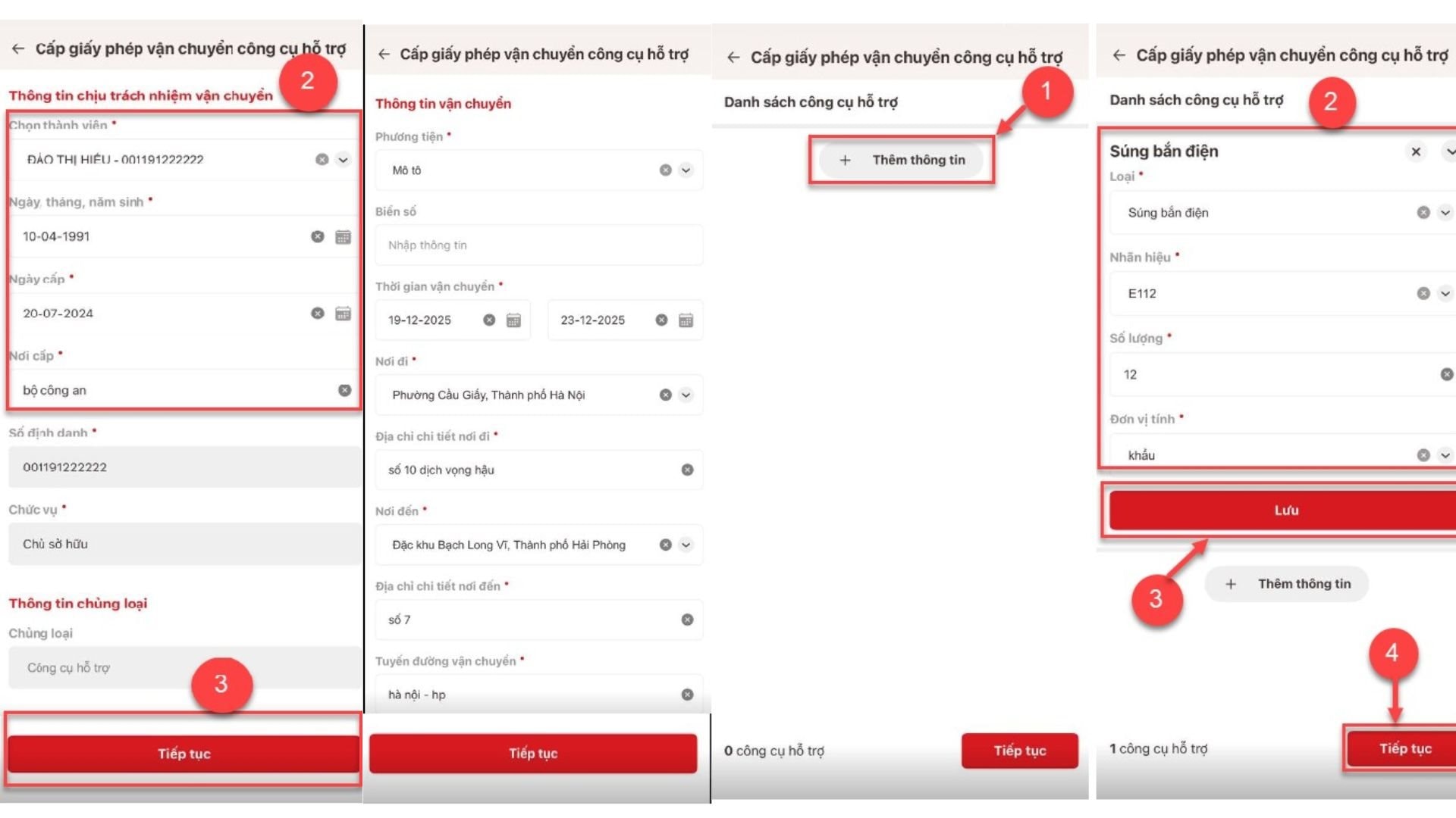 Hướng dẫn cấp giấy phép vận chuyển công cụ hỗ trợ trên VNeID
